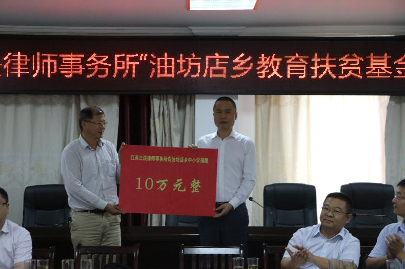 会上,三法所党支部书记刘伟还向金寨县油坊店乡中心小学捐赠教育扶贫助学基金。