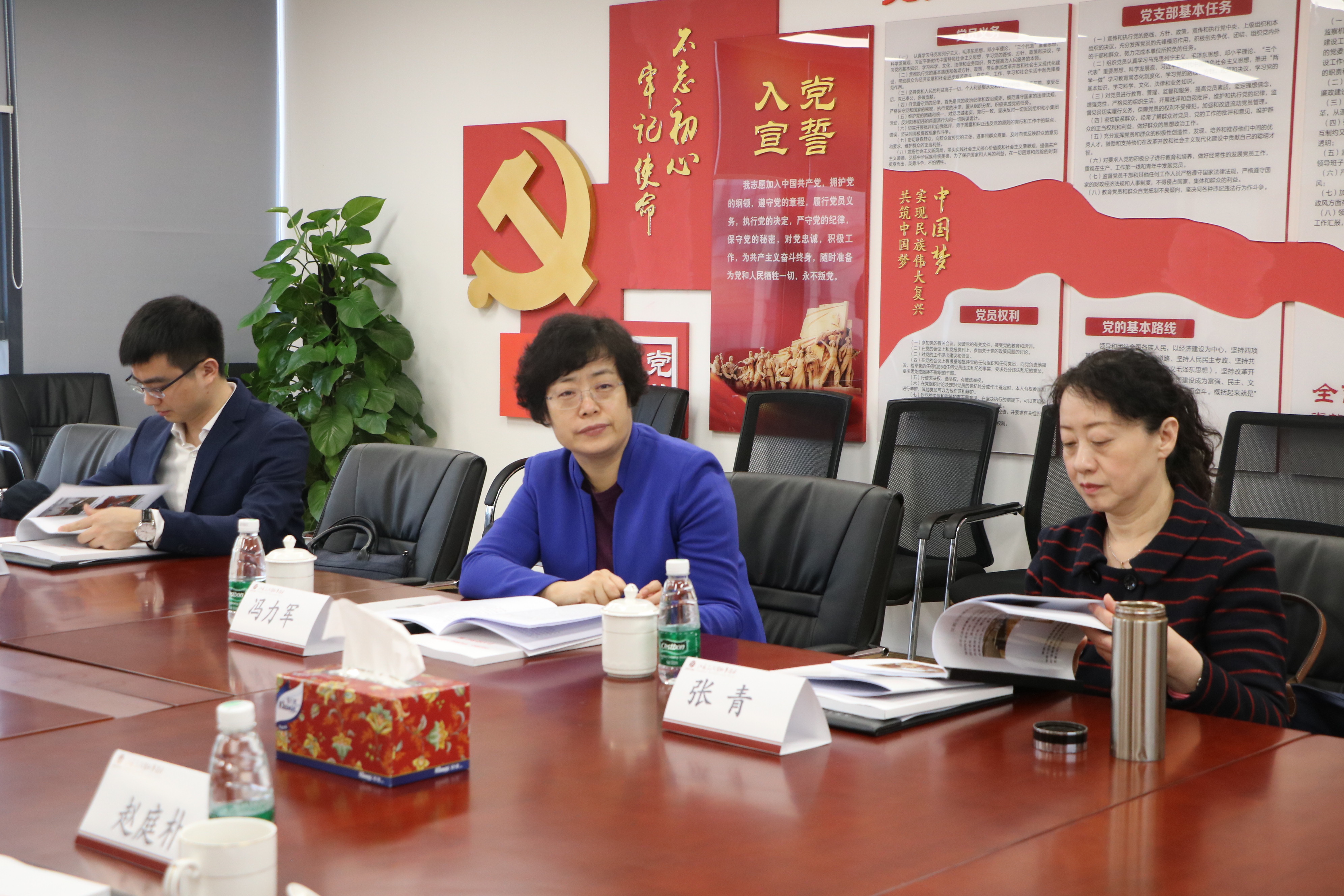 在三法所孙勇主任的引导下,冯力军主任一行先后参观了办公区域、三法大事记、文化活动掠影、党建活动中心。