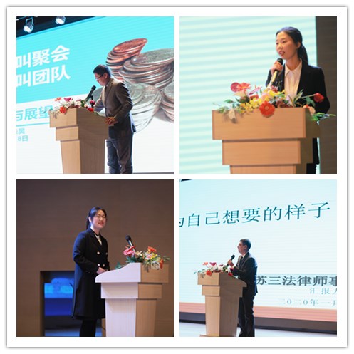颁奖仪式结束后,获得年度优秀团队律师代表朱昊、年度优秀律师倪杰、年度优秀青年律师王艳芳、年度优秀新人牛婷婷依次上台作精彩的交流发言,充分彰显出新时代三法律师的专业素质与魅力风采。