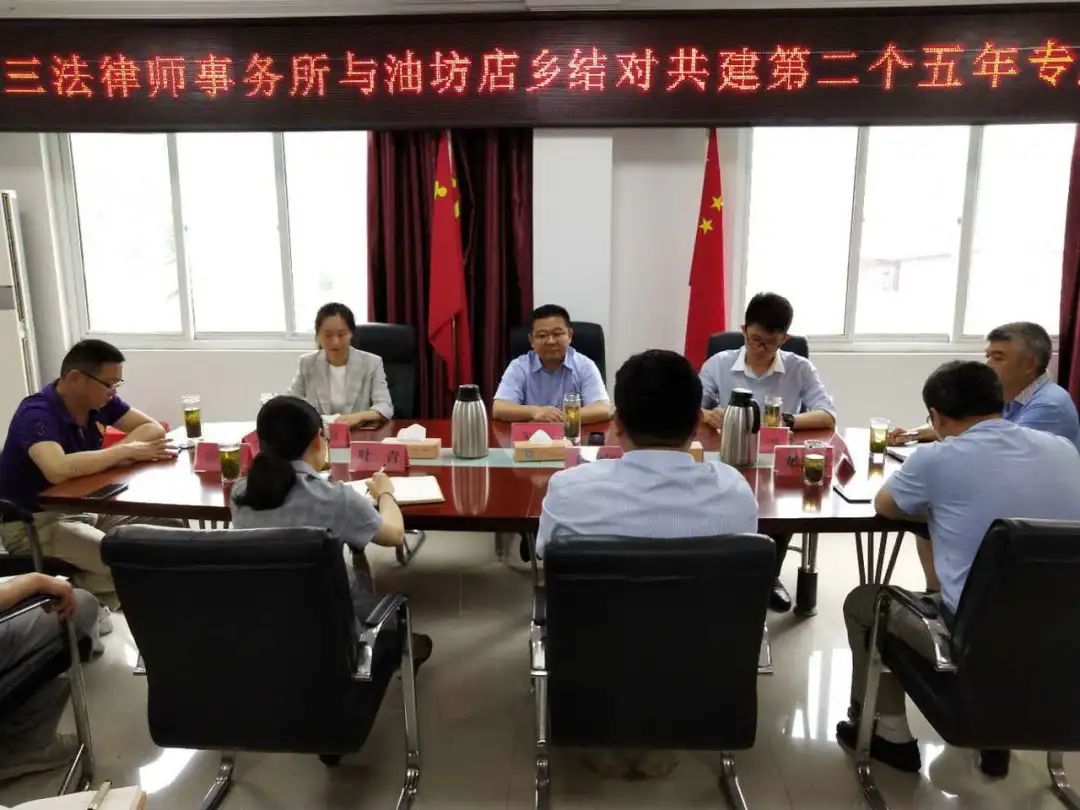座谈交流会上,油坊店乡王振宇书记回顾了过去五年在江苏三法律师事务所帮助下乡教育事业取得的重大成绩,肯定了三法所在困难学生援助、学校基础设施建设、设立三法教育基金等多个方面做出的努力。接着代表乡政府、学校师生向江苏三法律师事务所表示感谢,并对以后的共建工作如何开展提出了三点设想:一是援建一个项目,即打造法治公园;二是开展两项活动,即送法进茶企和送法进乡村;三是实现三个目标,即提升依法办事能力、完善乡镇治理机制和增强乡镇体系活力。