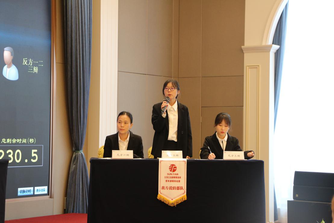 最后,三法所主任孙勇上台发言,他祝贺此次活动圆满成功。感谢分享经验的两位合伙人、所有参与进来的青年律师、组织此次活动的行政人员,感谢所有参赛选手努力准备呈现了一出美轮美奂的辩论比赛。