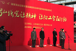 清晨的寒气尚未褪去,三法所李欲斌、李越峰律师来到新街口正洪街广场,分别代表省、市两级工会律师援助团援助律师,参加省总工会、南京市总工会举办“弘扬宪法精神、法治工会在行动”的国家宪法日暨全国法制宣传日系列活动启动仪式,启动仪式结束后,两名律师在现场为广大职工和市民进行宪法及法律宣传、咨询服务。