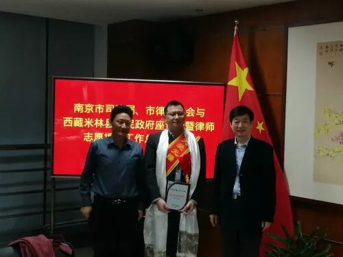2016年10月,为响应司法部和全国律协号召,在江苏省司法厅、南京市司法局、江苏省律协和南京市律协的支持下,三法所派出四名律师赴西藏无律师县——米林县开展律师援助工作。在志愿援藏工作期间,三法所律师积极为当地政府和人民服务,提供大量法律意见和法律帮助。与此同时,三法所动员全所律师募捐书籍和设备,在米林县派镇多雄村设立了三法书屋。一年期的援藏工作圆满完成,三法所与米林县人民、米林县政府结下了深厚的情谊,我们衷心的祝愿米林县法治工作在两地共建的新局面下,取得更大的进步。
