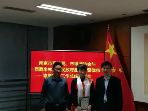 11月7日,西藏米林县人民政府、南京市司法局、市律师协会共同召开律师志愿援藏工作总结会暨援藏律师表彰会。米林县人民政府副县长陈剑钊、米林县司法局局长米玛索朗、南京市司法局副局长陈宣东等出席会议,三法所合伙人杨冬律师,援藏律师李欲斌、王炜、马晶晶、糜婷受邀参加。