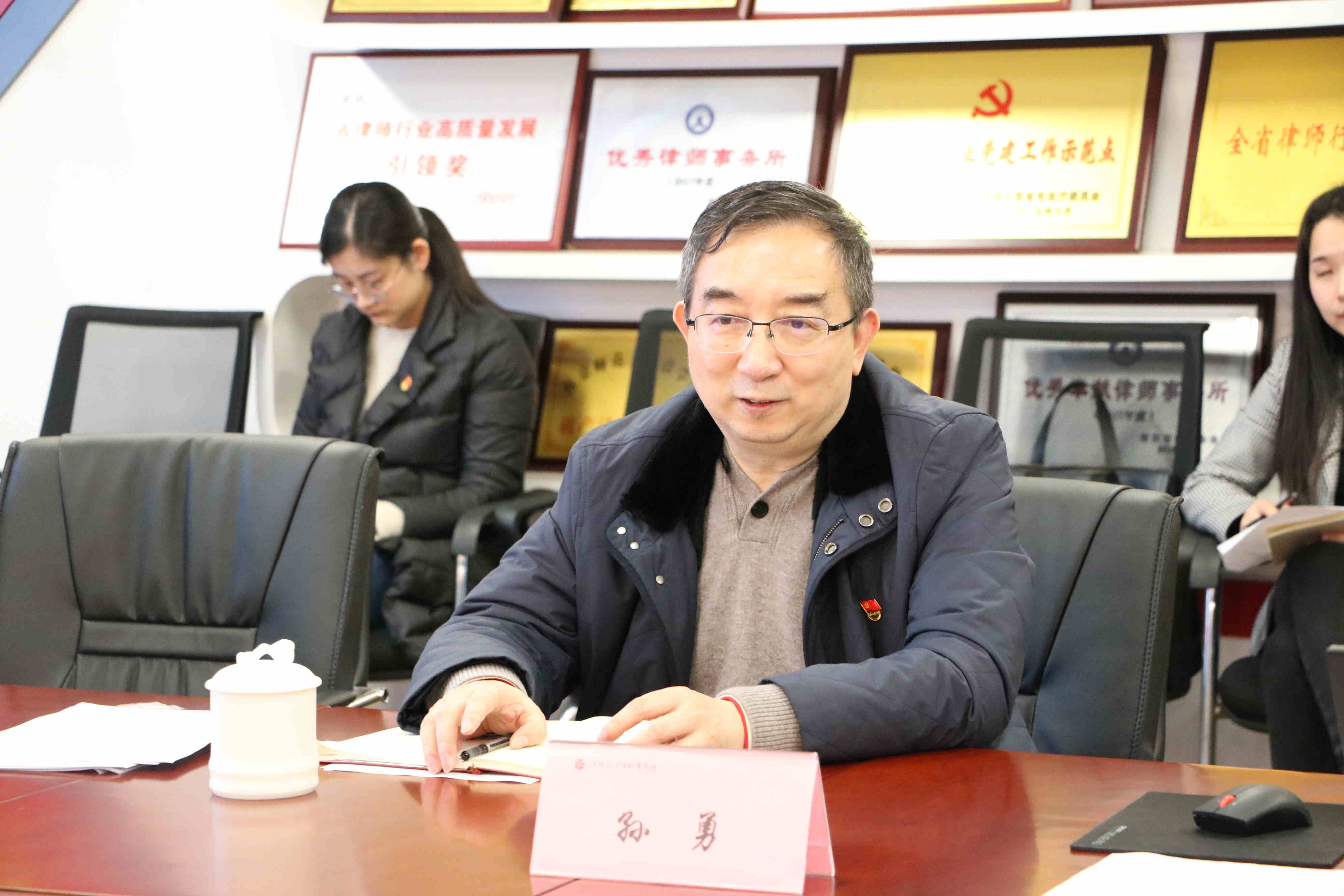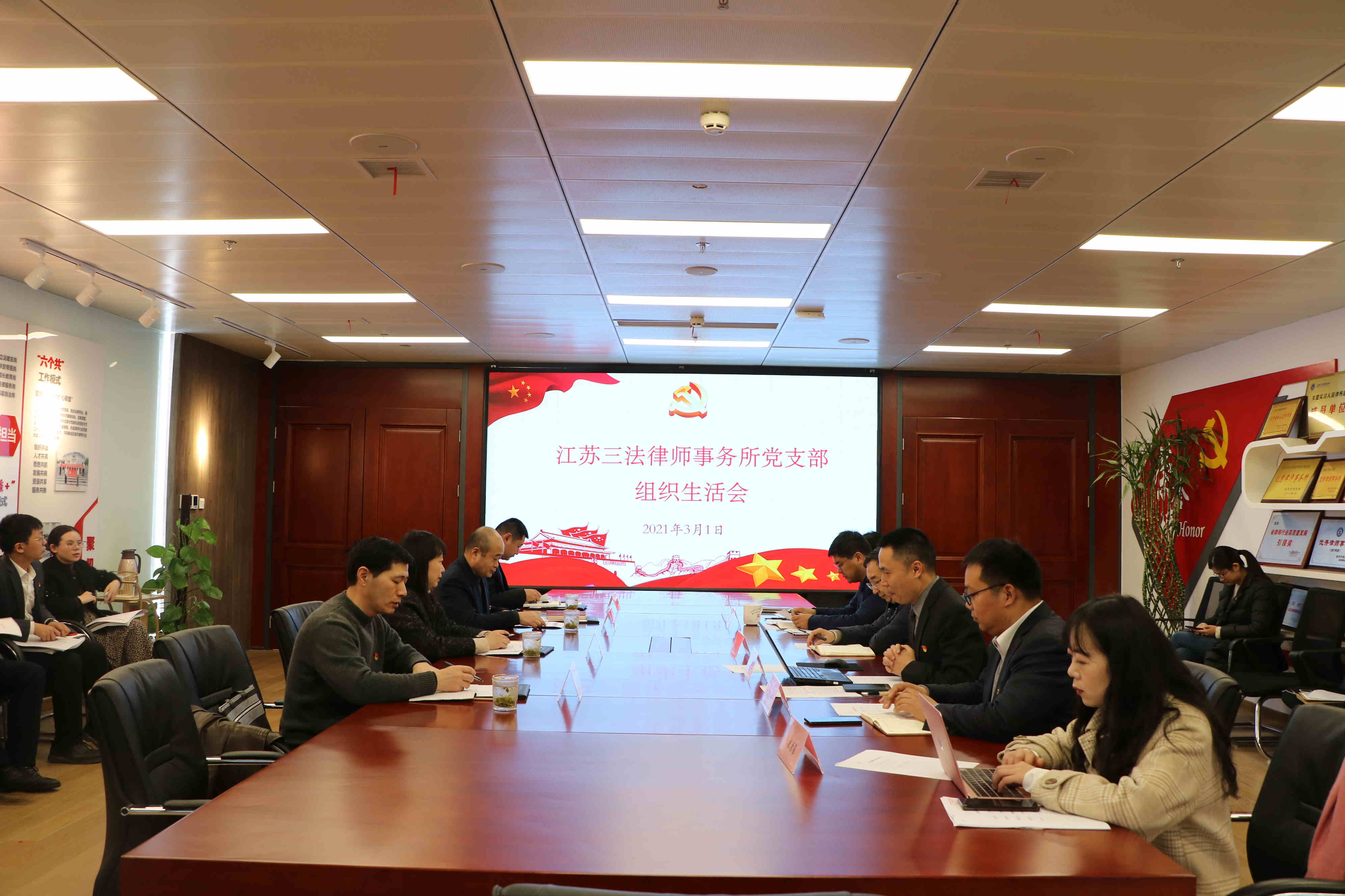 2021年3月1日下午,江苏三法律师事务所党支部召开组织生活会。南京市市级机关工委党建指导部部长高凤、四级调研员蒋振洋,南京市司法局律工处处长、市律师行业党委副书记凌盛广、党委办公室主管朱琪龙一行莅临江苏三法律师事务所,到会督导。江苏三法律师事务所主任孙勇,党支部副书记、高级合伙人杨博炜及支部班子成员和在所党员律师参加了会议。党支部书记刘伟主持会议。