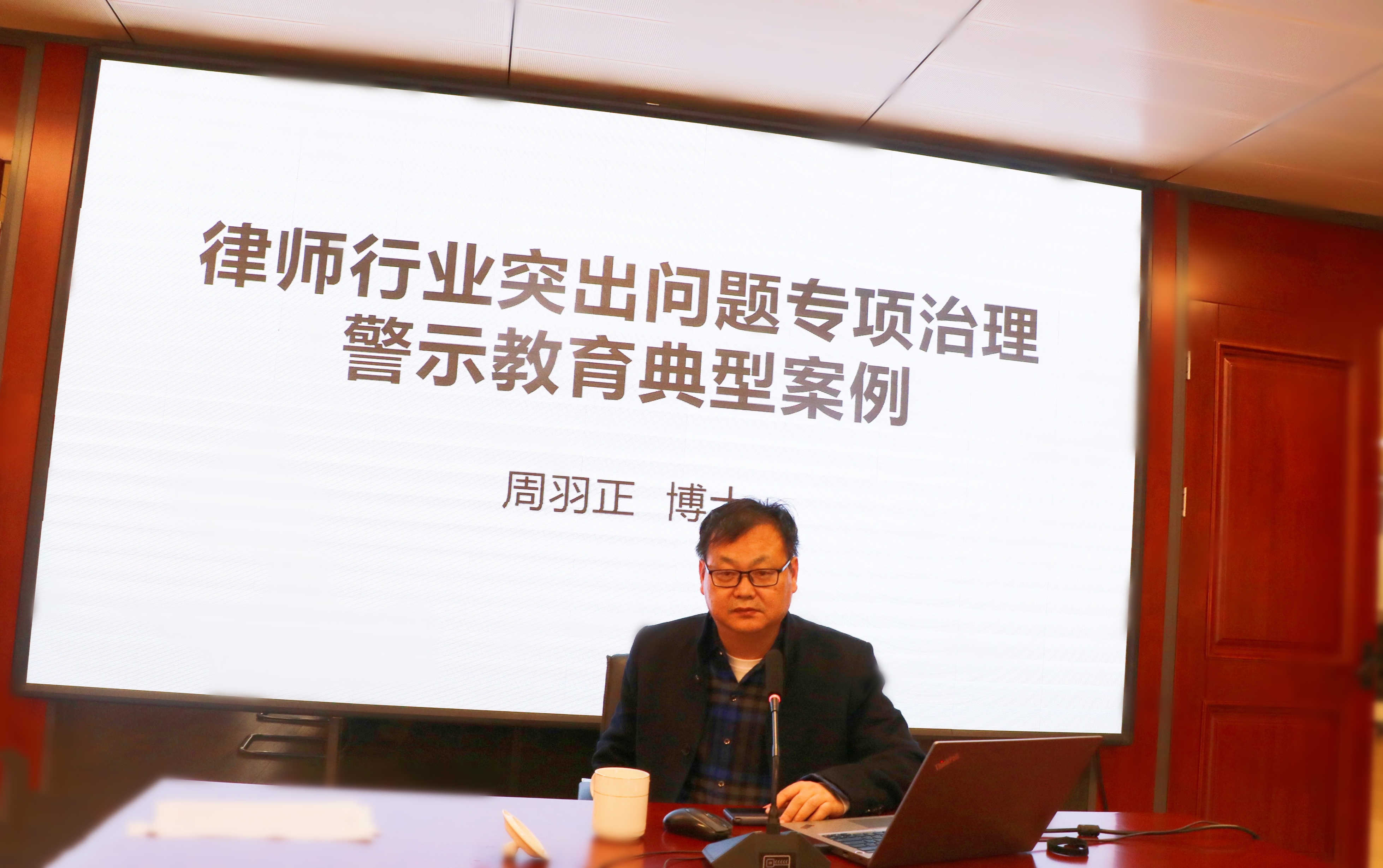 随后,周羽正博士结合律师行业突出问题专项治理警示教育典型案例,分别从法律法规、行业规范、职业道德要求等方面展开重点警示教育指导,要求全所律师要以本次专项治理为契机,以问题为导向,强化自我监督,扎实开展政治理论和律师业务学习,不断提高法律服务水平,弘扬律师行业新风正气。
