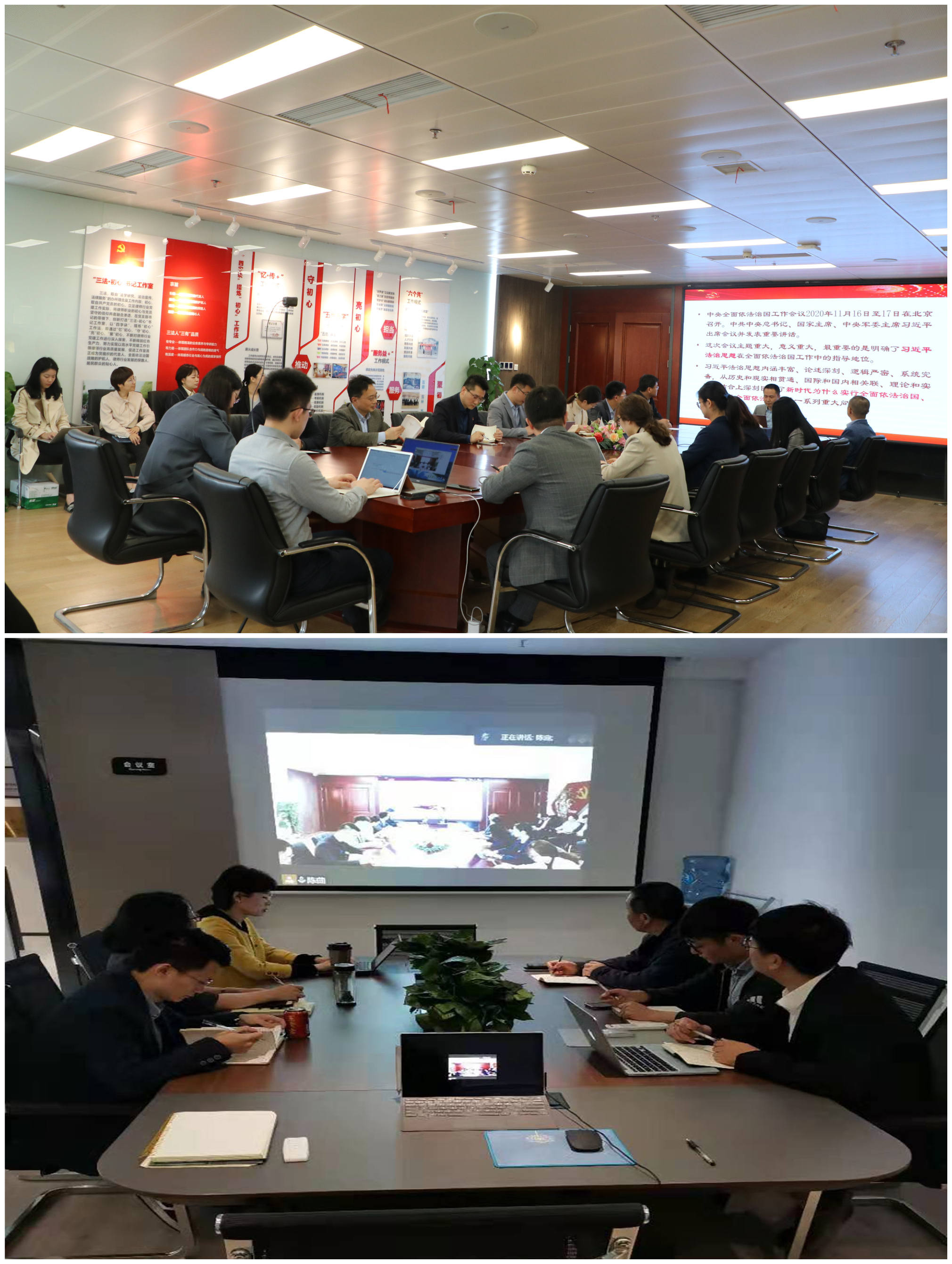 习近平法治思想是马克思主义法治理论中国化的最新成果,是新时代全面依法治国的根本遵循和行动指南。为深入学习贯彻习近平法治思想,2021年4月16日,江苏三法律师事务所组织开展习近平法治思想学习培训。本次培训会由江苏三法律师事务所党支部书记刘伟主讲,总所全体在所执业律师、实习律师以及行辅人员参加,江北分所、江阴分所、扬州分所执业律师、实习律师以及行辅人员线上参会。