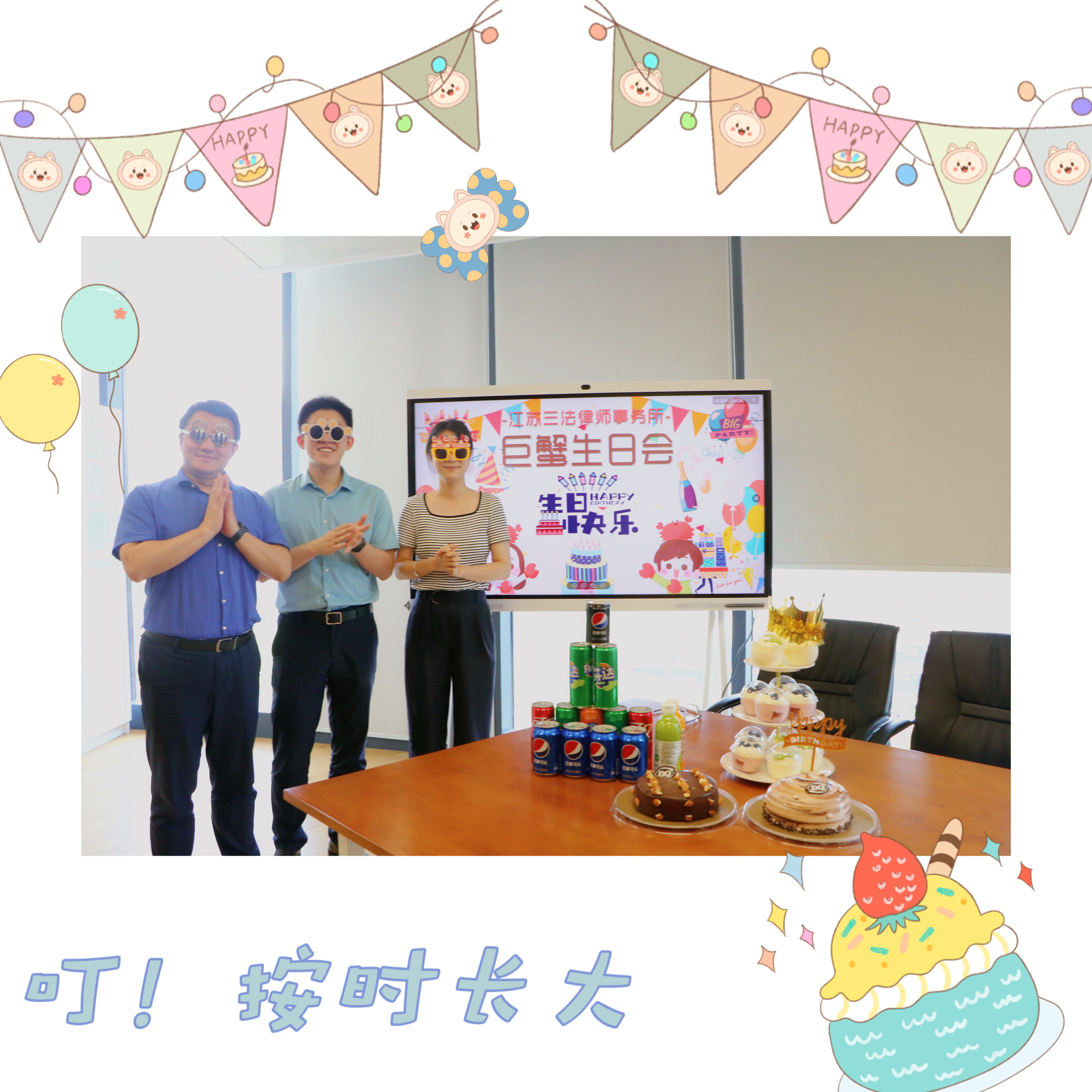 夏天是远道而来的浪漫,2022年7月15日,在这热情似火的夏日,江苏三法律师事务所为巨蟹小伙伴们举办了一场专属生日会。生日会现场,热浪不断,大家在欢声笑语中分享生日的喜悦,感受三法大家庭的温暖。