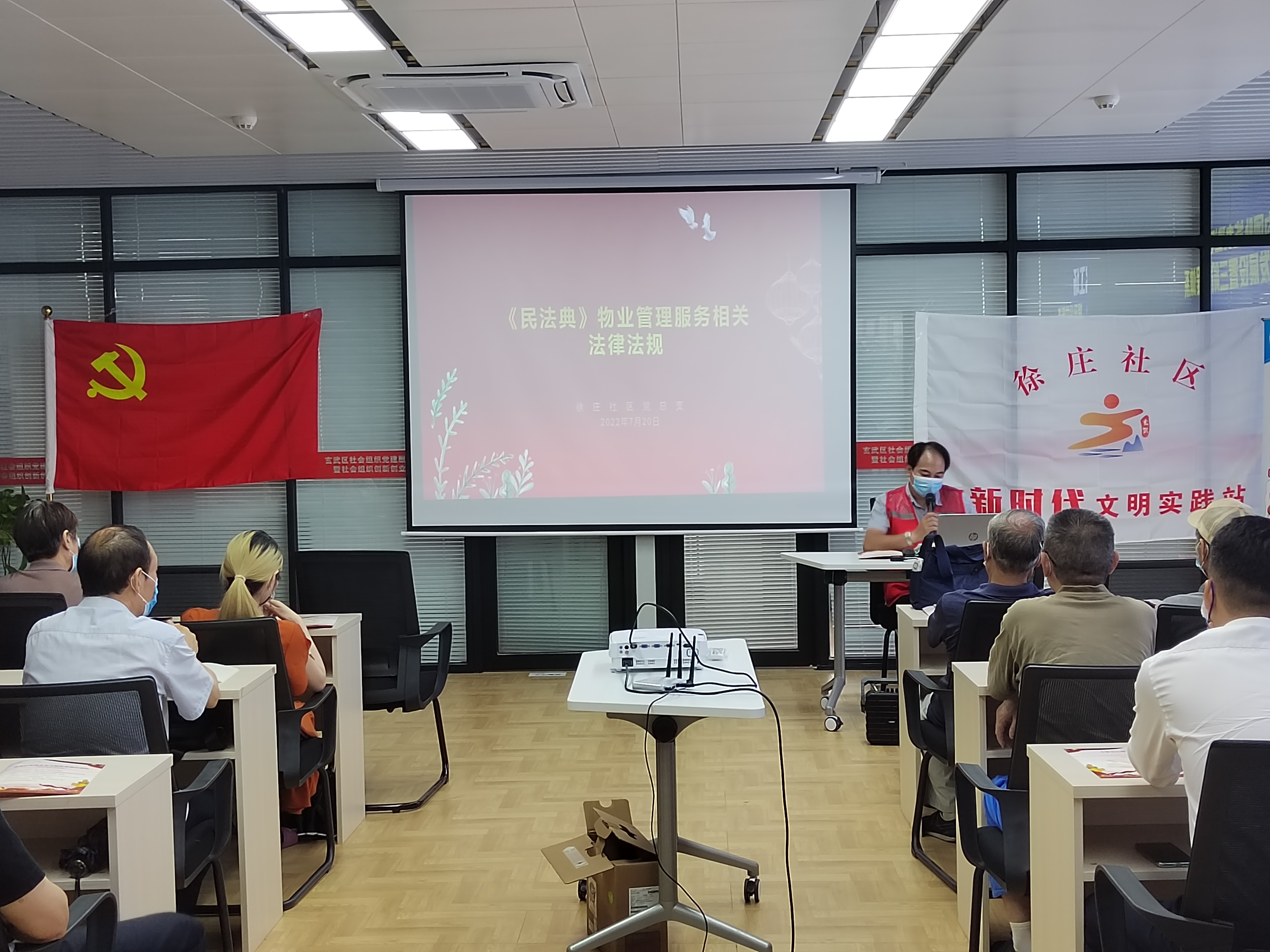 2022年7月20日下午,江苏三法律师事务所执业律师李全应邀赴南京市玄武区徐庄社区开展《民法典》物业服务相关法律知识宣传讲座,约四十位社区党员参加了本次讲座。