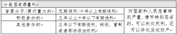 【煽动分裂国家罪】煽动分裂国家、破坏国家统一的,处五年以下有期徒刑、拘役、管制或者剥夺政治权利;首要分子或者罪行重大的,处五年以上有期徒刑。