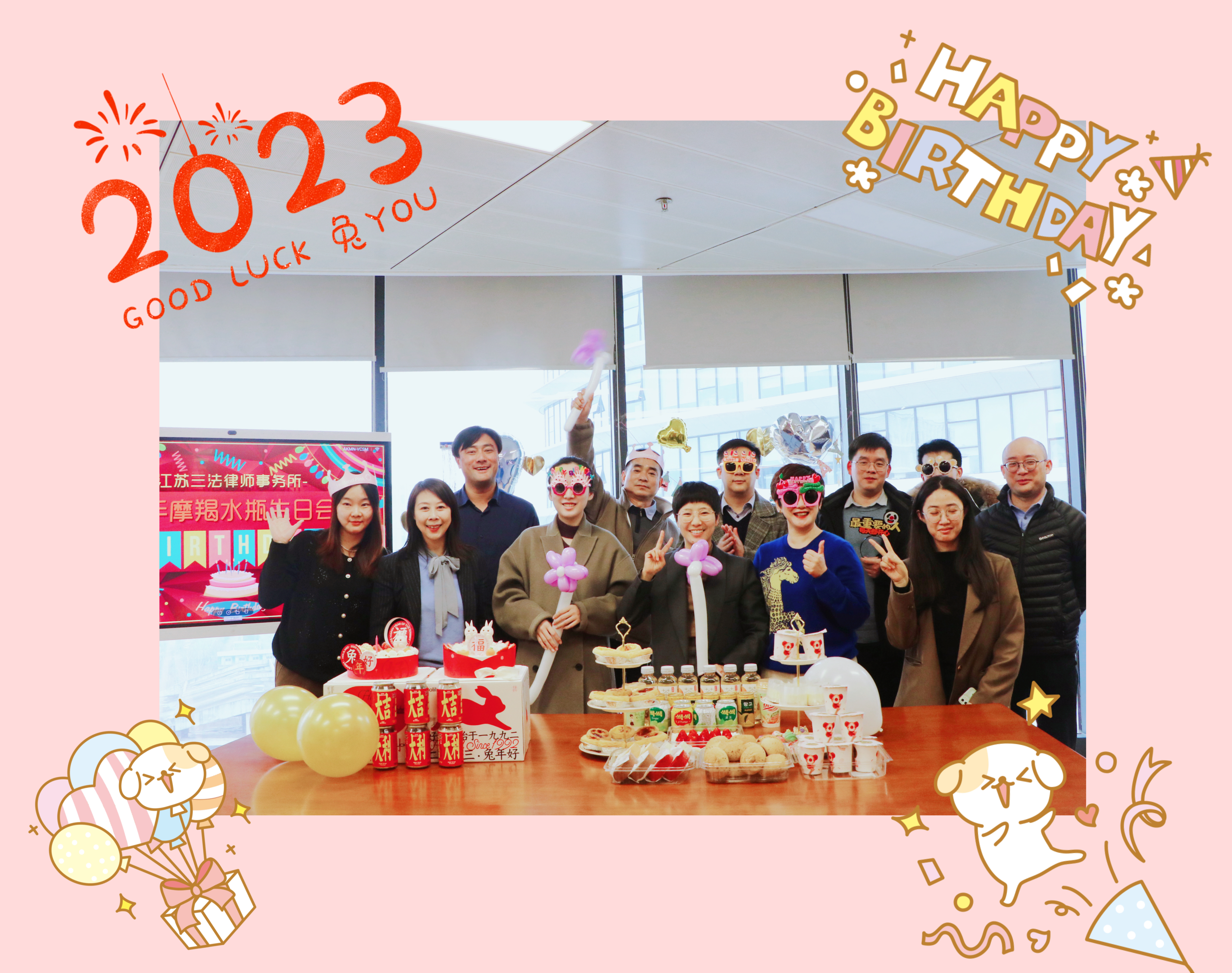 一元复始,万象更新。2023年1月13日,江苏三法律师事务所为射手座、摩羯座和水瓶座小伙伴举办了一场特别的生日会。大家暂时放下手中的工作,欢聚一堂,在这美好冬日邂逅温馨生日时刻。