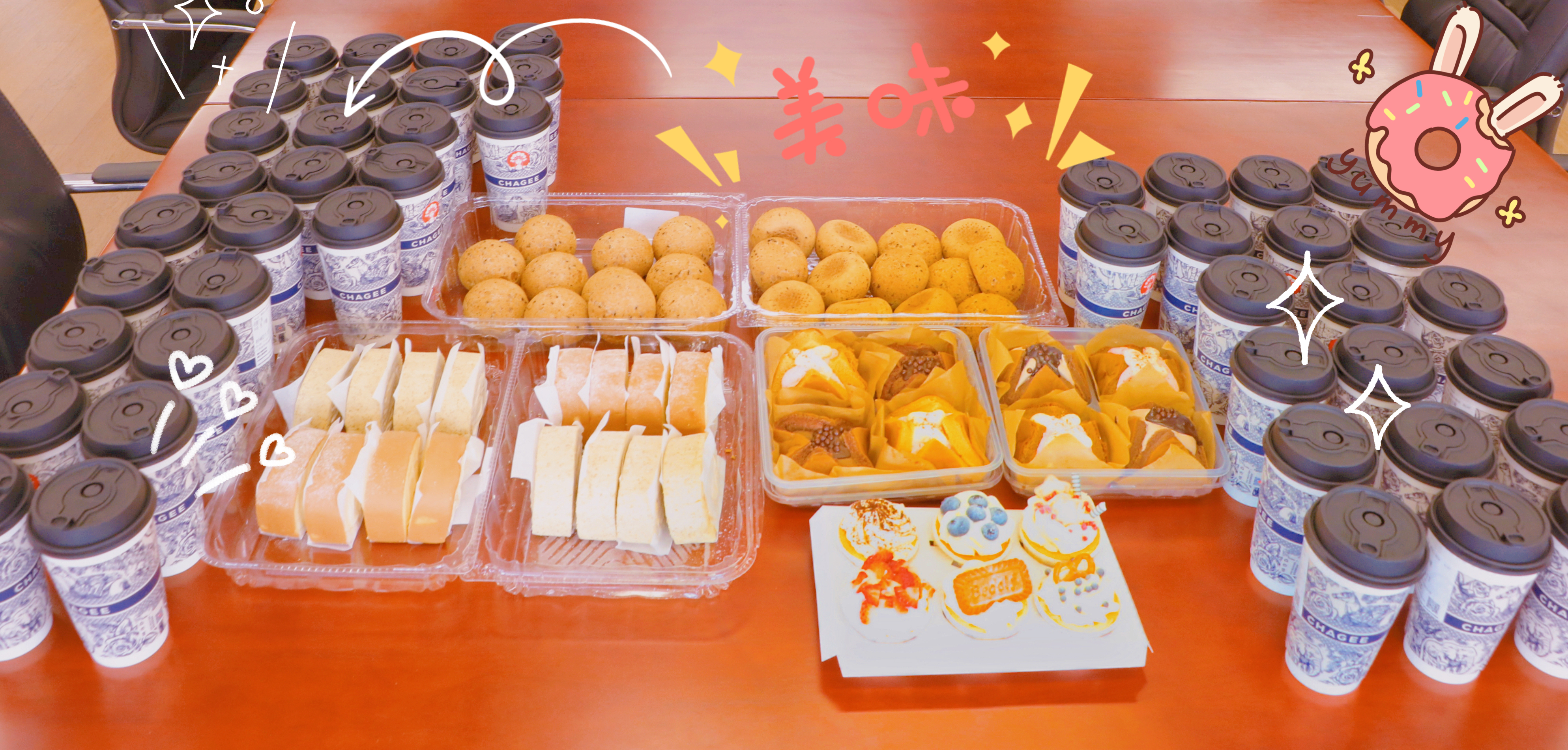 精心准备的奶茶和蛋糕排排坐,静待女神们的到来~