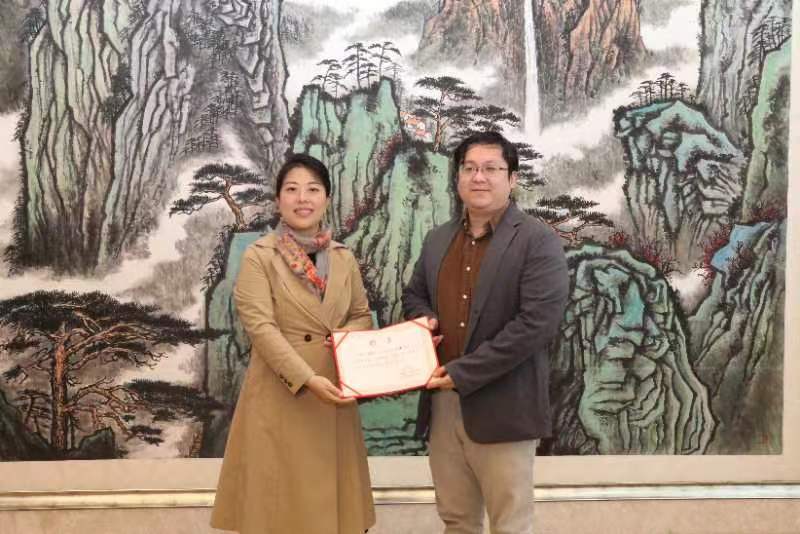 南京审计大学党委常委、副校长周方舒为孙天律师颁发聘书