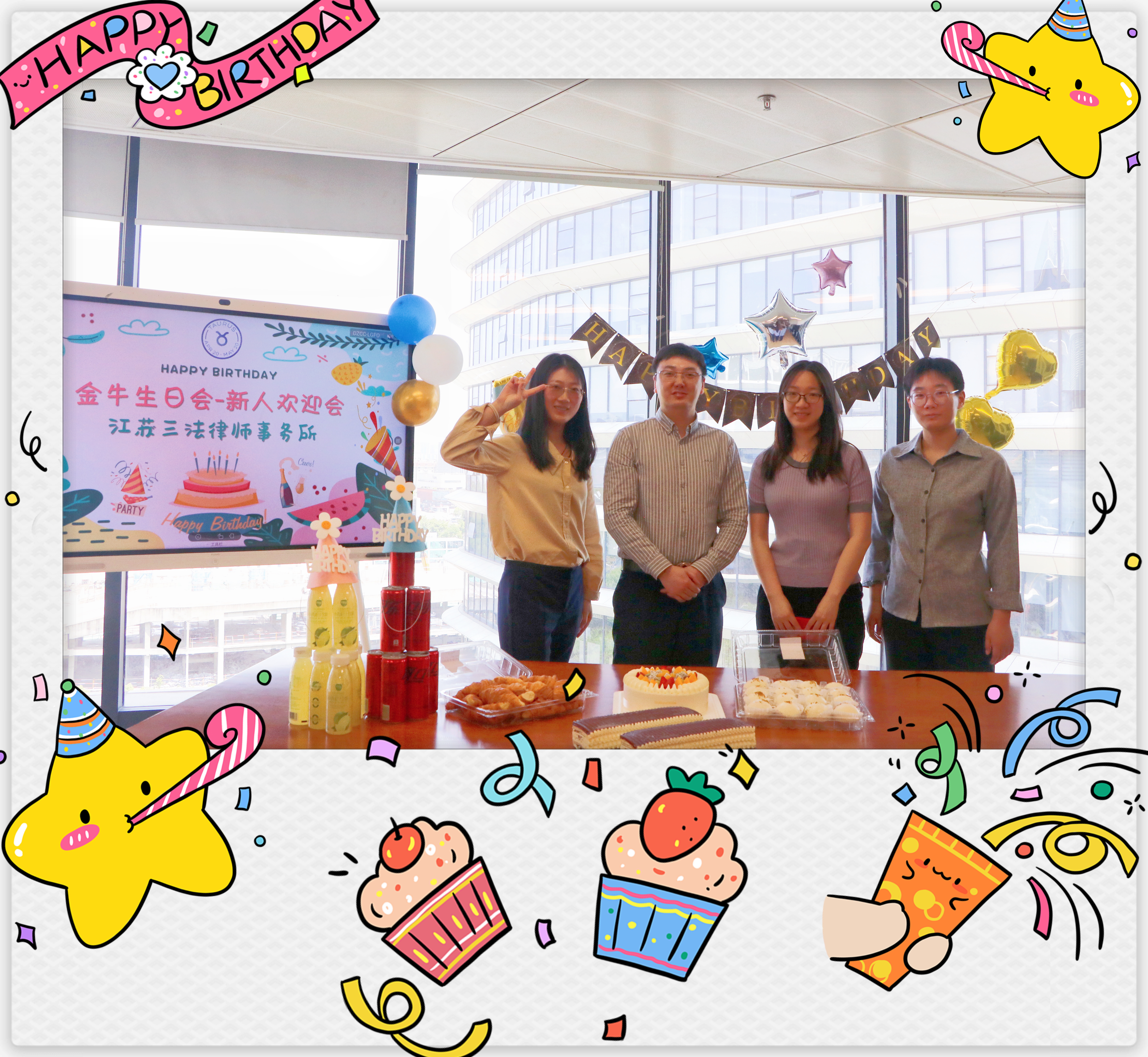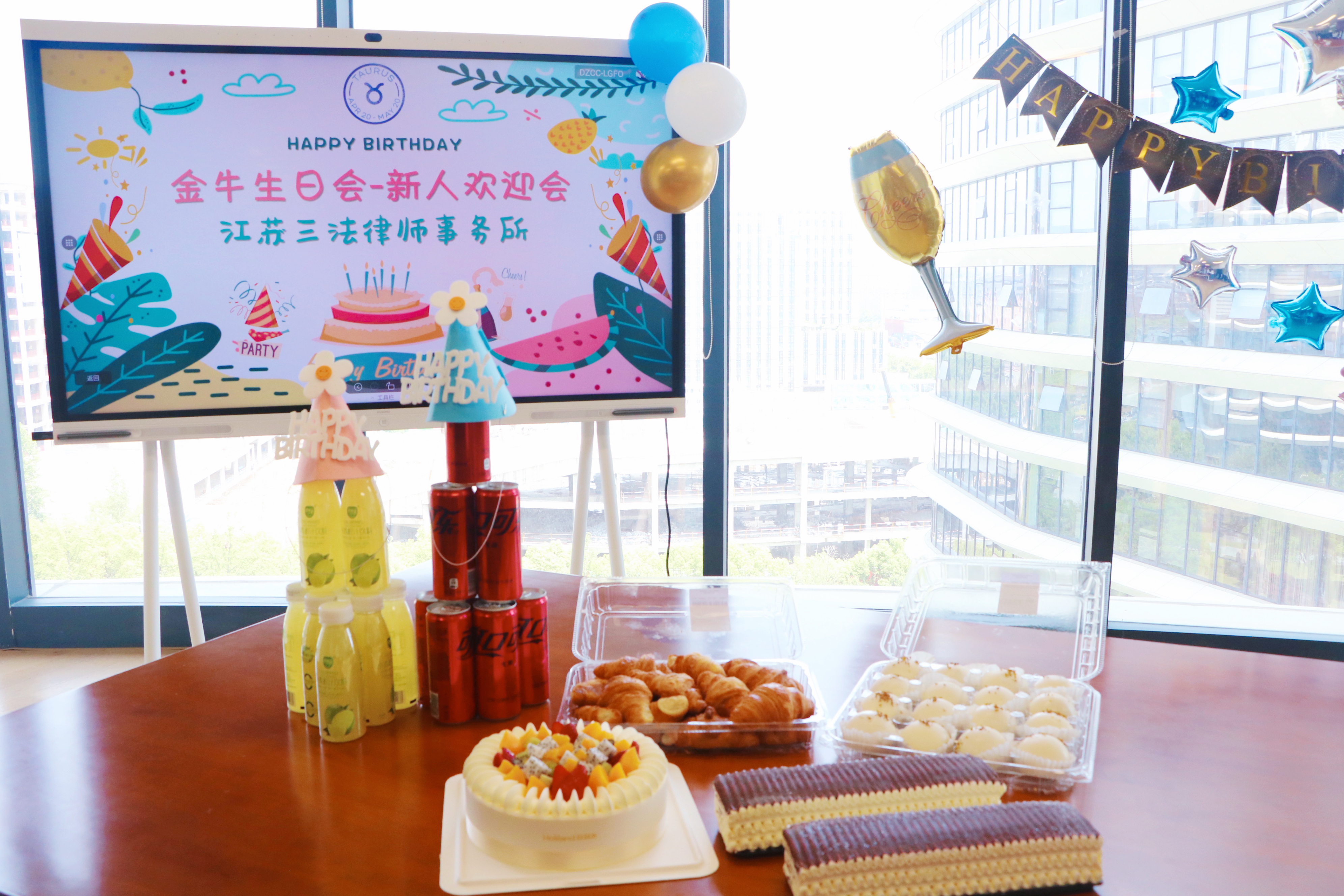 五月是晚春和初夏的合响,风里溢满了草木花香。5月17日,伴着夏日的前奏,江苏三法律师事务所生日会与迎新会如期而至,金牛座寿星们和新入职的小伙伴们欢聚一堂,在轻松愉快的氛围中共度专属于他们的party。