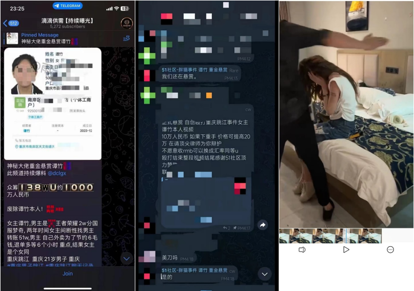 关于该事件的各种法律视角解读已经不少,但随着事件在网上不断发酵,笔者注意到一个值得广大网民警惕的苗头,就是网上开始出现一些网民发出的公开悬赏(如下图),宣称只要将事件女主谭竹“废除”、“拿下人头”等,就给予巨额重奖。随之而来的是谭竹的个人身份信息被大肆公开,所谓“重赏之下必有勇夫”,网上已出现据称是“殴打女主”的视频,虽然不知真假,但这种恶意的悬赏广告极易引发次生危害后果。