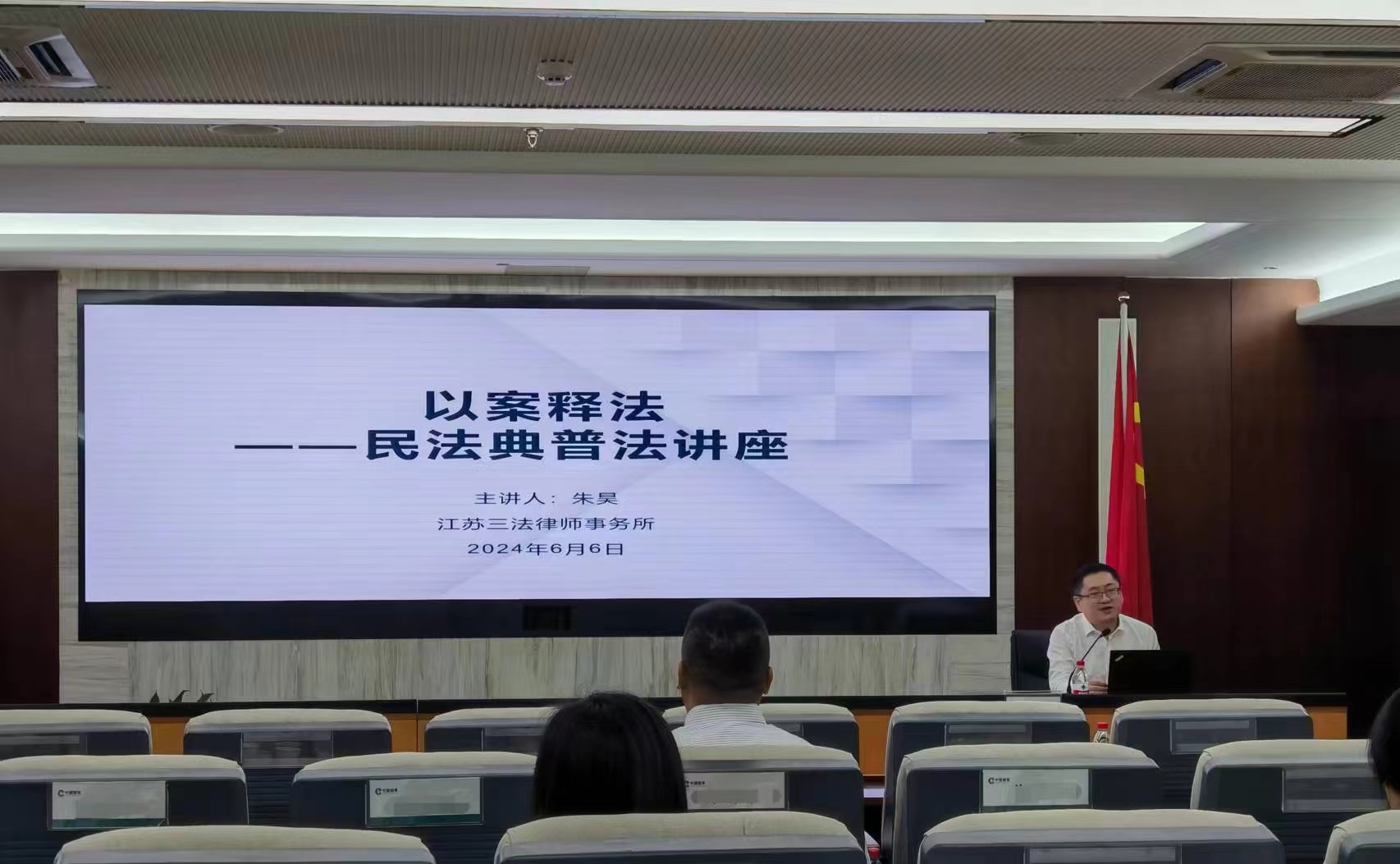 2024年6月6日,江苏三法律师事务所高级合伙人朱昊律师应邀前往江苏省烟草公司南京市公司开展民法典讲座。