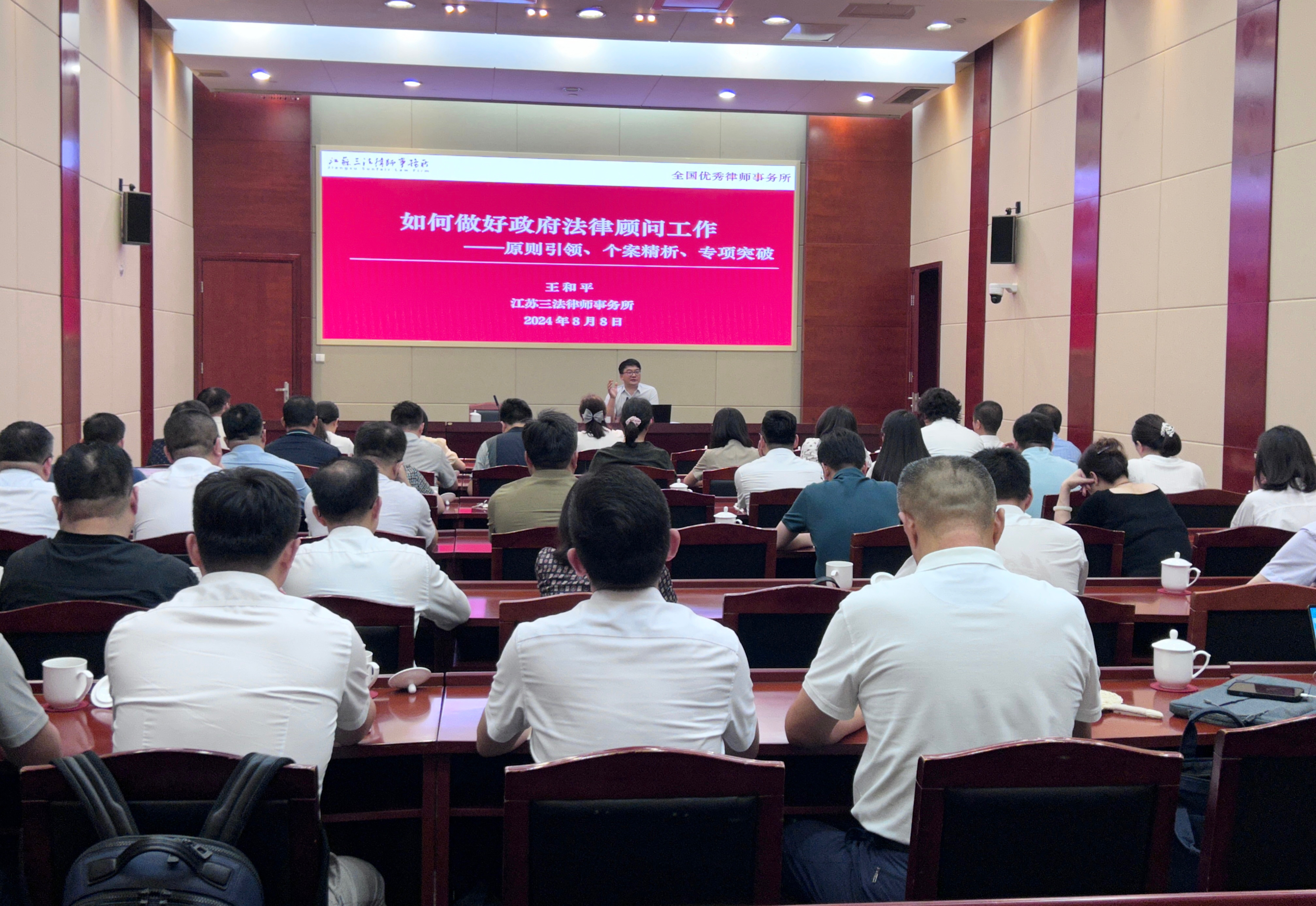 8月8日,为加强和规范常州市政府法律顾问工作,进一步发挥政府法律顾问及智库成员的作用,提高其参与政府法治建设和法律事务的能力,常州市司法局组织开展了专题培训。江苏三法律师事务所管理合伙人王和平律师受邀作了题为《如何做好政府法律顾问工作》的专题讲座。