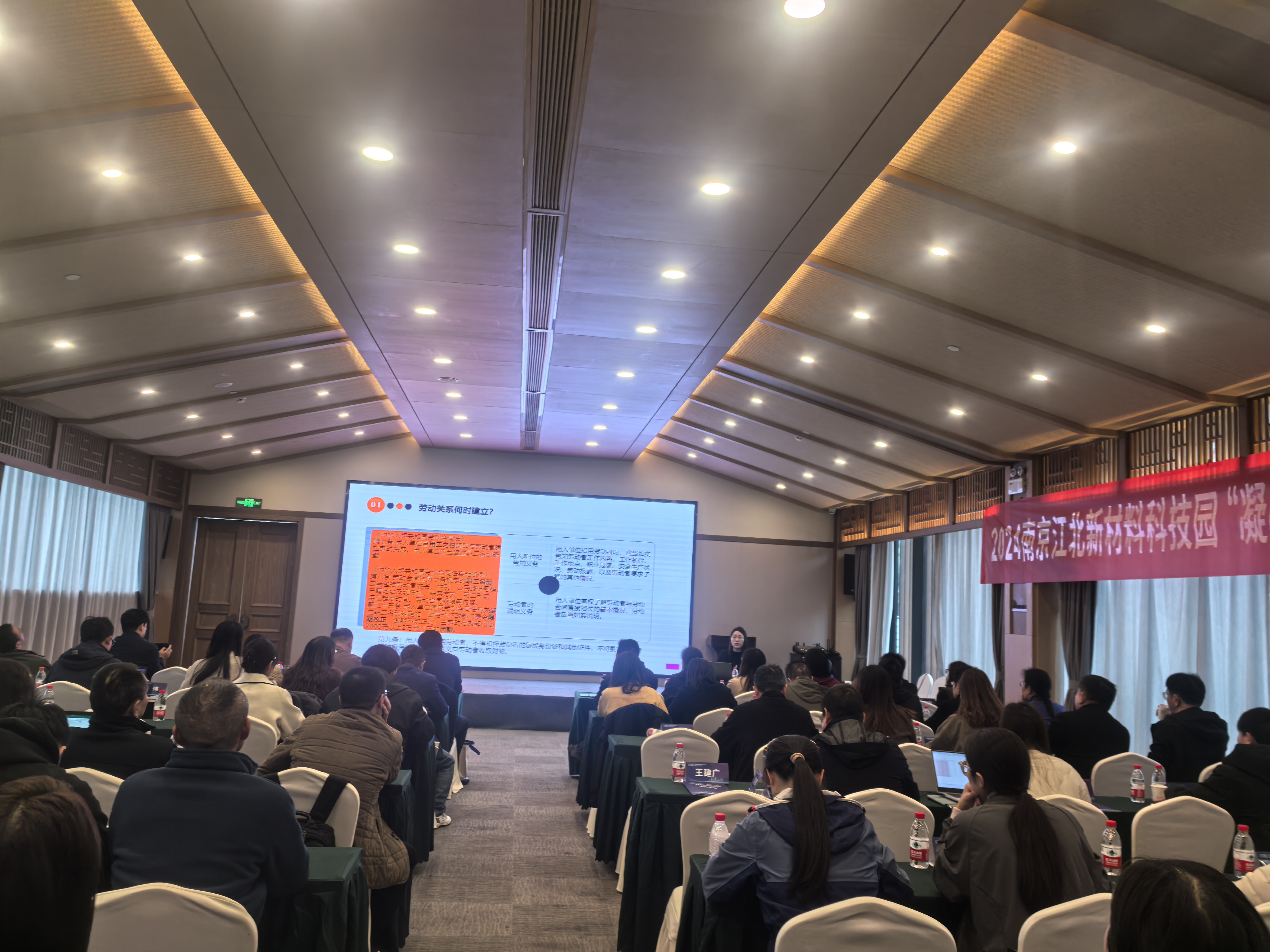 为全面贯彻落实党的二十届三中全会精神,深入学习贯彻习近平总书记关于工人阶级和工会工作的重要论述和关于产业工人队伍建设改革的重要指示精神,进一步提升园区基层工会干部的履职能力,南京江北新区新材料科技园工会联合会举办了为期4天的“凝心聚力 赋能履职”基层工会干部培训班。2024年11月20日下午,我所江北新区分所律师王艳芳应邀前往培训班开展“《劳动合同法》下的企业合规用工”专题讲座。