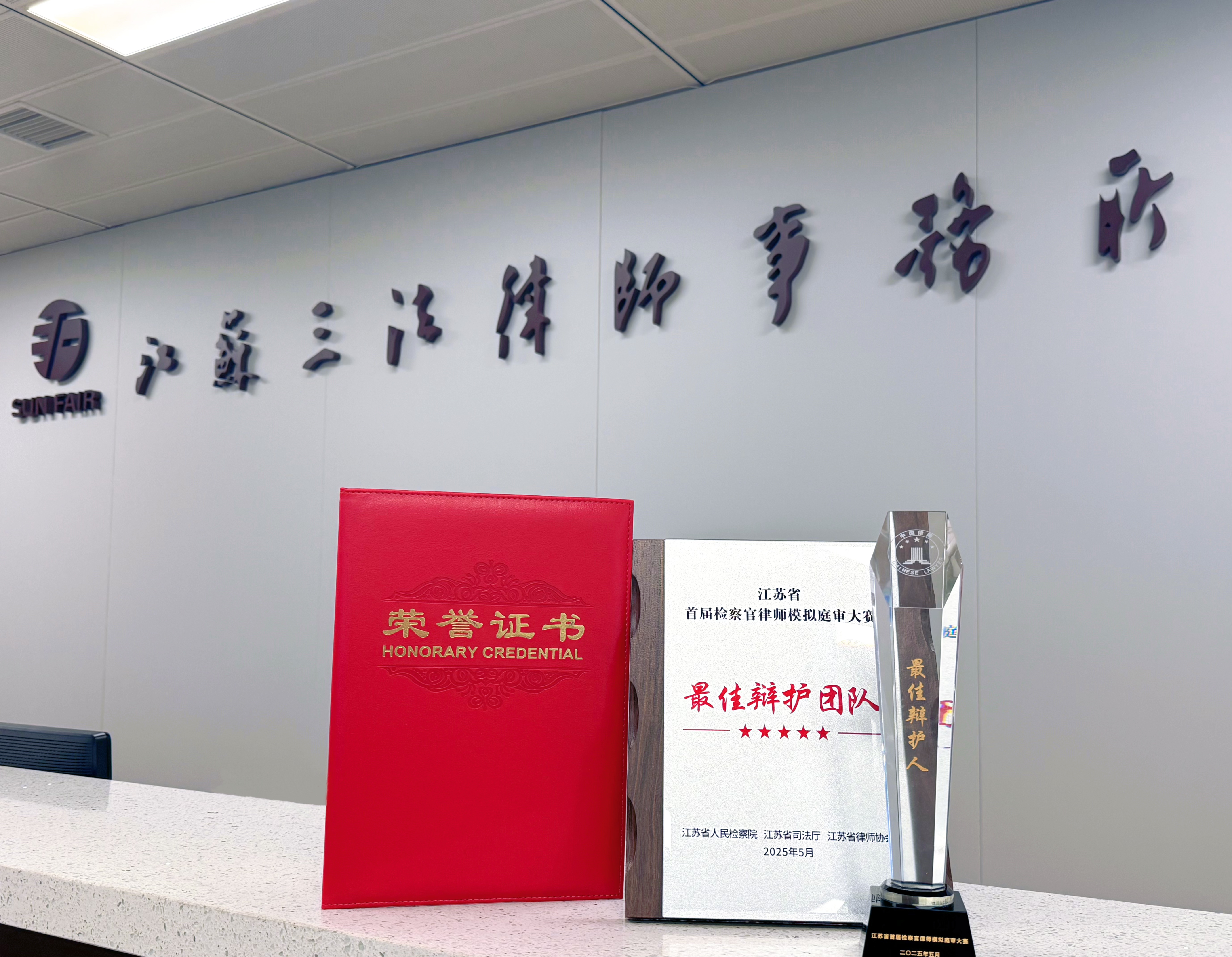 5月29日,省检察院、省司法厅、省律师协会在国家检察官学院江苏分院联合举办江苏省首届检察官律师模拟庭审大赛。经过激烈角逐,江苏三法律师事务所管理合伙人杨冬律师所在的辩护人团队(江苏律师一队)从由检律双方32名选手组成的8支代表队中脱颖而出,斩获佳绩,荣获“最佳辩护团队”奖,杨冬律师荣获“最佳辩护人”奖!
