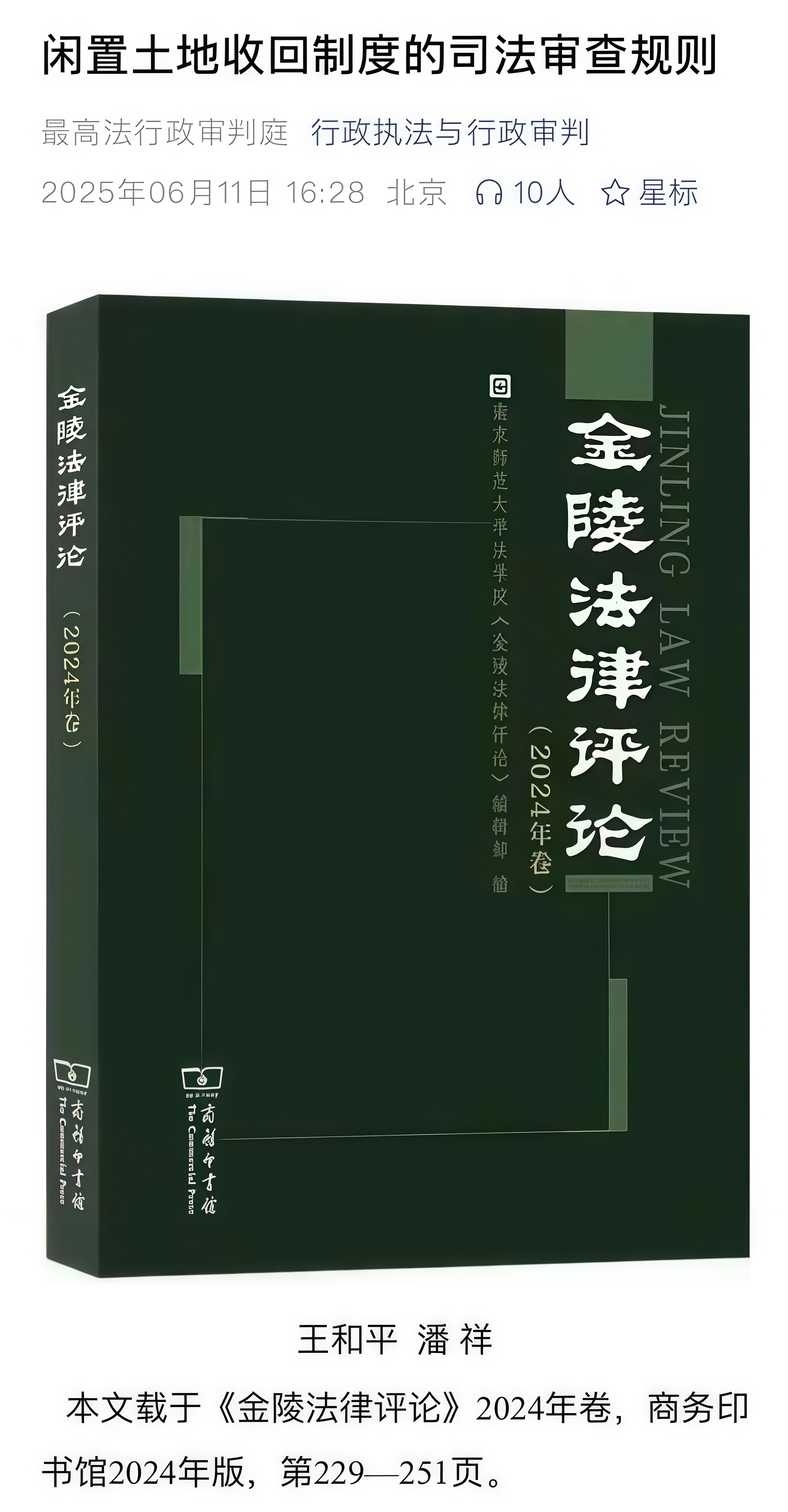 6月11日,由江苏三法律师事务所党支部书记、管理合伙人王和平律师,青年律师潘祥撰写的论文《闲置土地收回制度的司法审查规则》被最高人民法院行政审判庭公众号转载!此前,该论文也被刊载于《金陵法律评论》2024年卷。