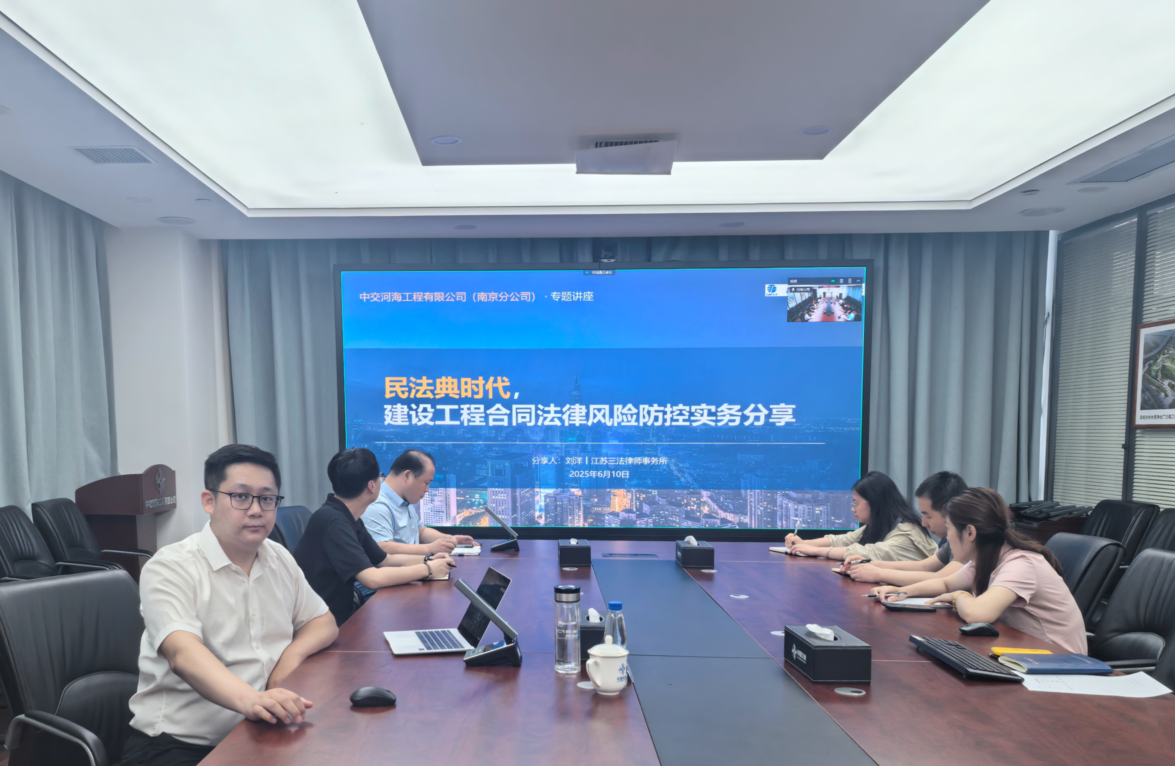 2025年6月10日下午,江苏三法律师事务所高级合伙人刘洋律师应邀前往中交河海工程有限公司(南京分公司)开展《民法典-建设工程合同法律风险防控实务分享》专题讲座。