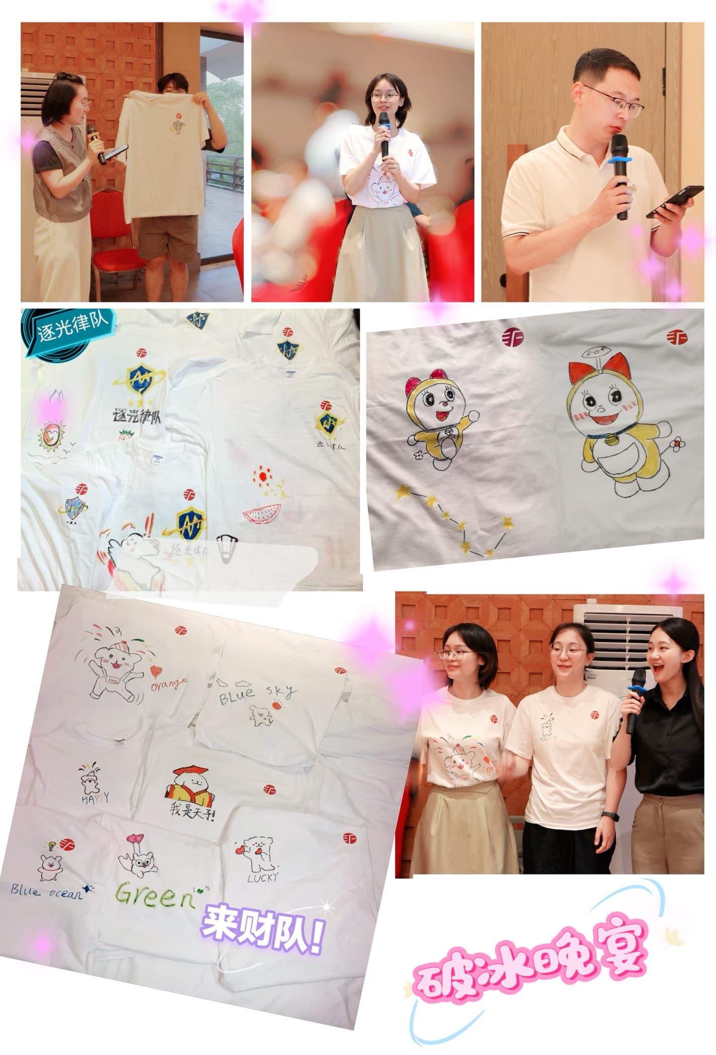7月4日晚,暑气蒸腾的夏夜被三法小伙伴们别开生面的破冰晚会再次点燃。本次晚会由三法所青委会副主任罗秋霞主持。晚会上,各小组依次登台亮相,大家带着亲手设计的 DIY 队服,化身创意使者,为大家生动讲述队服设计背后的奇思妙想,伴随着大声呼喊出的slogan,现场掌声与欢笑声此起彼伏,为即将开启的青训营奏响了活力序曲。