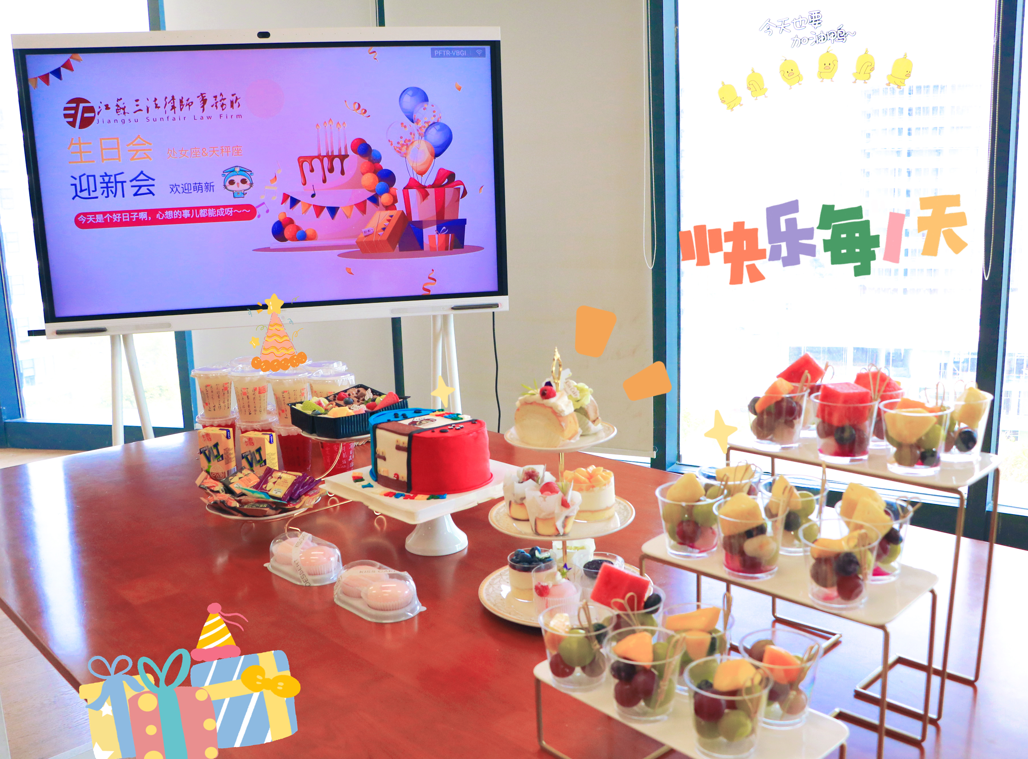 暑气渐收,秋风送爽。在这满载硕果与惬意的美好时节,9月5日,江苏三法律师事务所为处女座、天秤座的寿星们送来了最诚挚的生日祝福与美好期许,也为初入三法大家庭的新伙伴们铺开暖心的融入画卷,大家欢聚一堂,在笑语融融间,感受着三法大家庭的温暖。