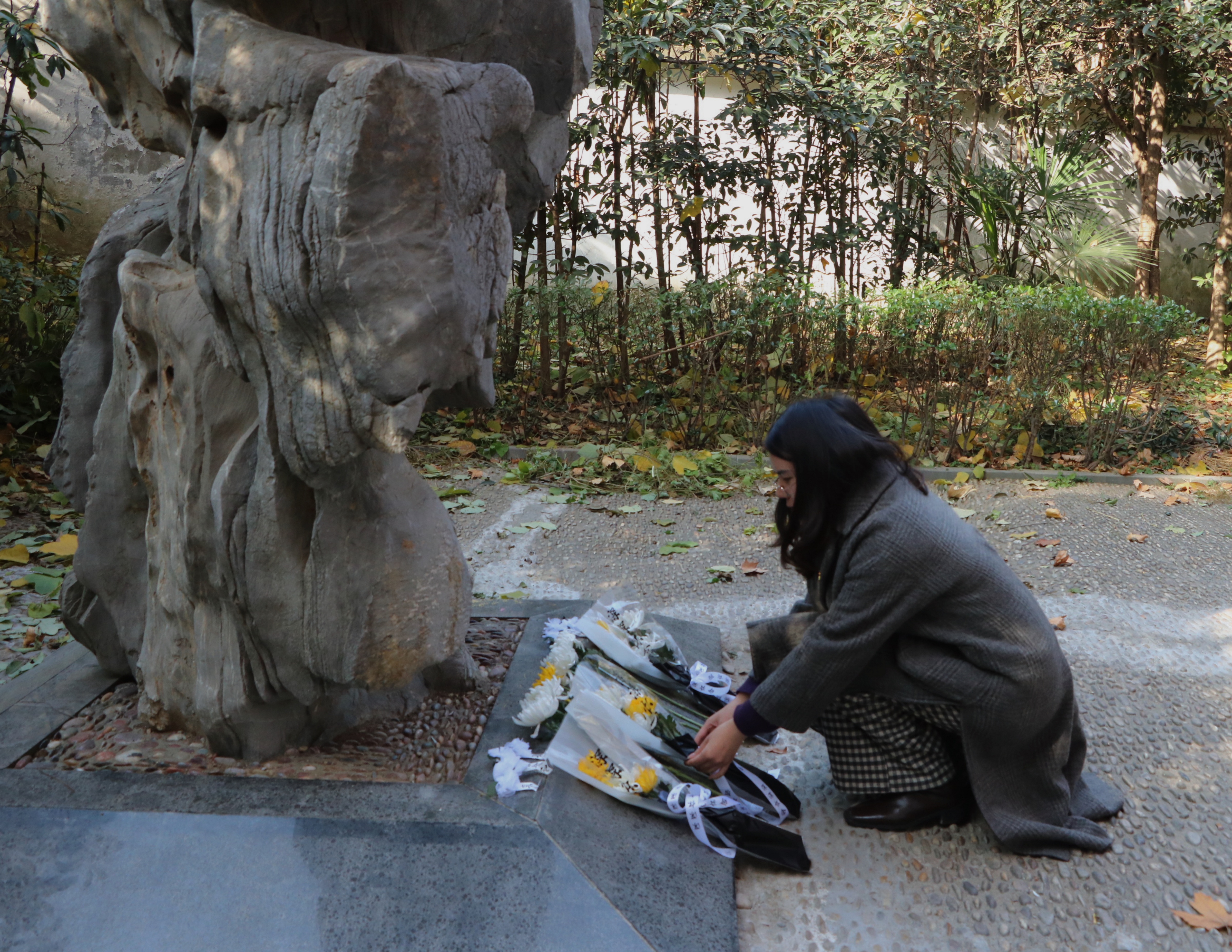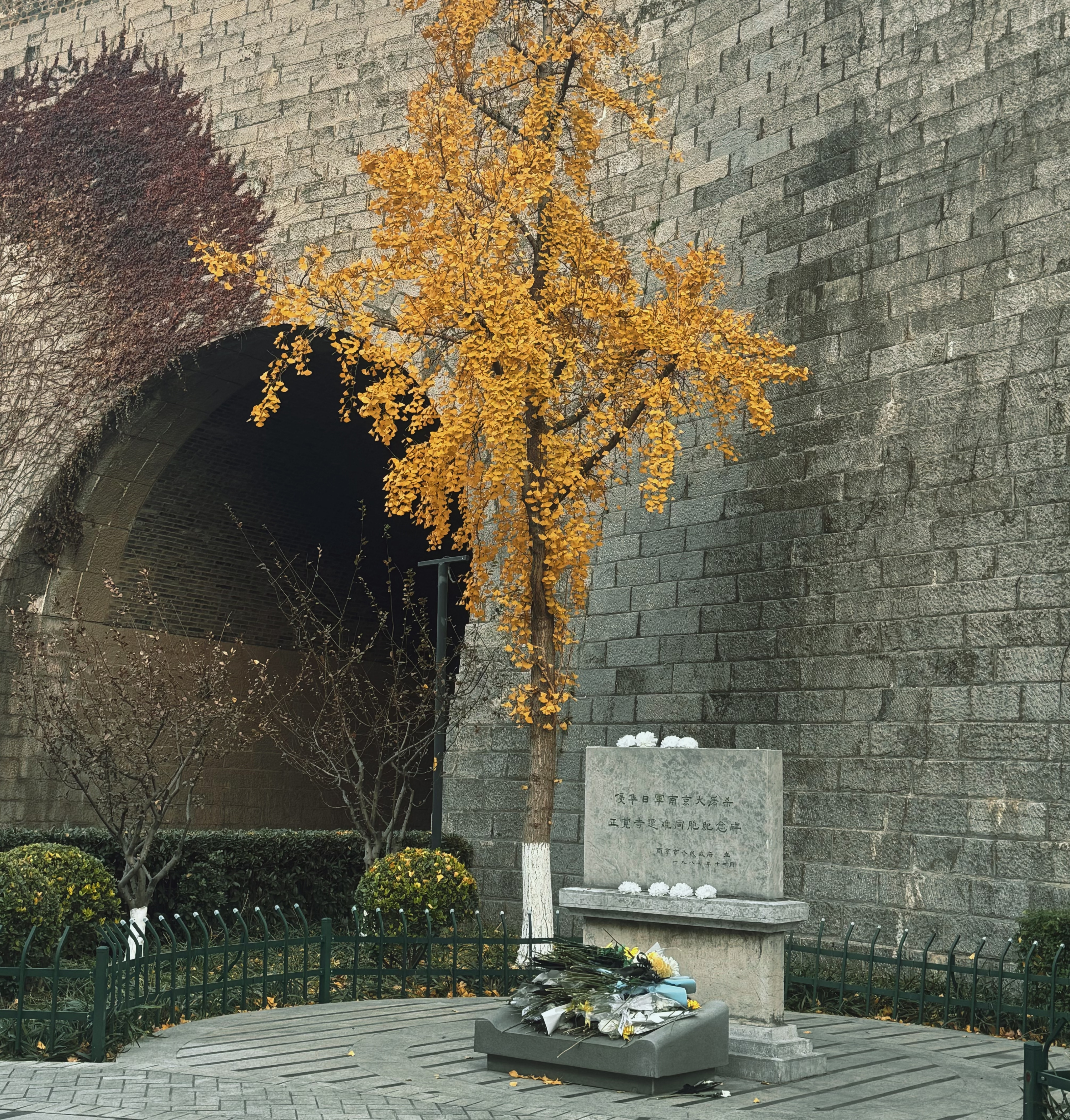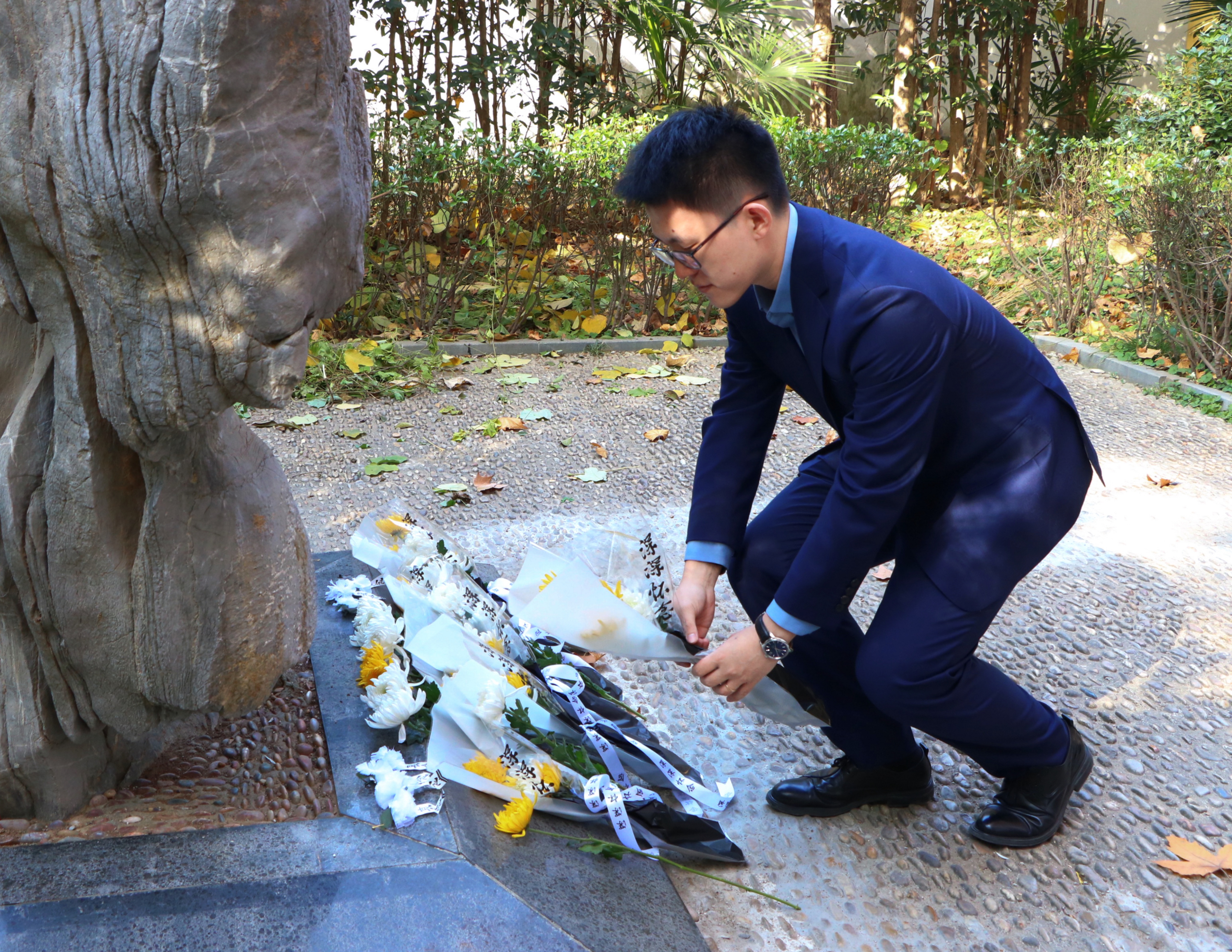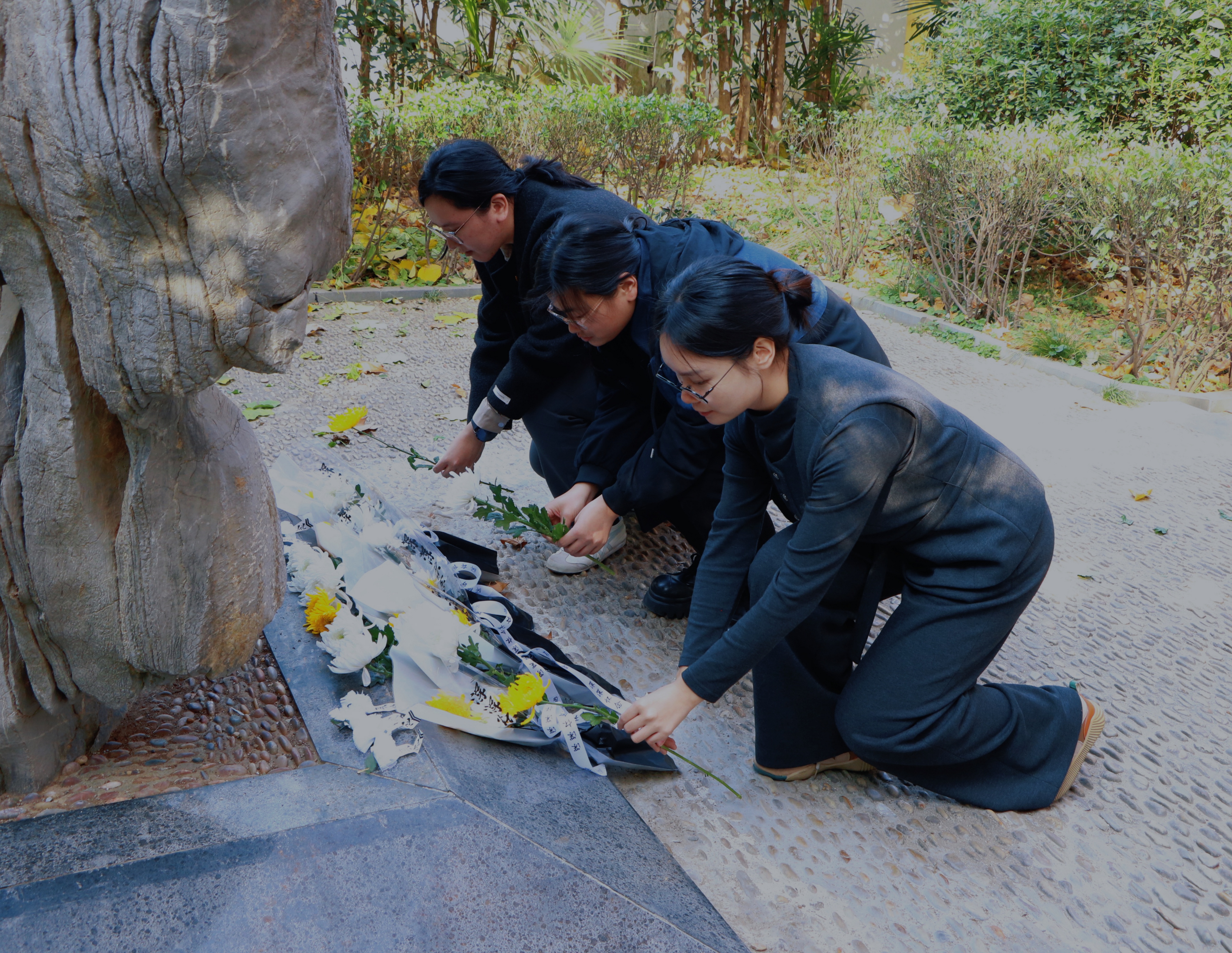 默哀完毕,大家依次走到纪念碑前,敬献鲜花,以此缅怀那段山河破碎、生灵涂炭的苦难历史,悼念在浩劫中不幸罹难的无辜同胞。