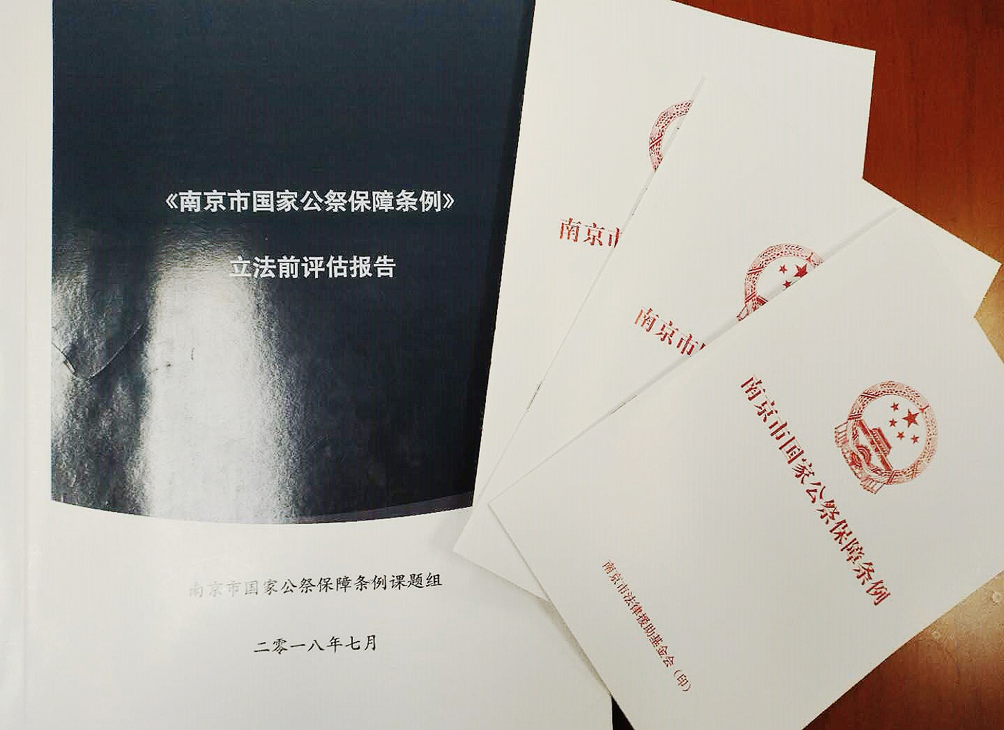 2018年5月,江苏三法律师事务所受南京市人大常委会委托,开展《南京市国家公祭保障条例》立法前评估及草案起草工作。在孙勇主任带领下,课题组通过45个日日夜夜的努力认真、细致和全面的立法前评估,先后召开各种形式座谈会、访谈会、讨论会、论证会、办公会30余次,共形成了40余份、近10万字的会议纪要和工作简报,完成调查报告和调研报告10份,汇编立法参考资料近200万字,并在此基础上形成14万字立法前评估报告及附件,圆满起草了高质量的条例草案建议稿。
