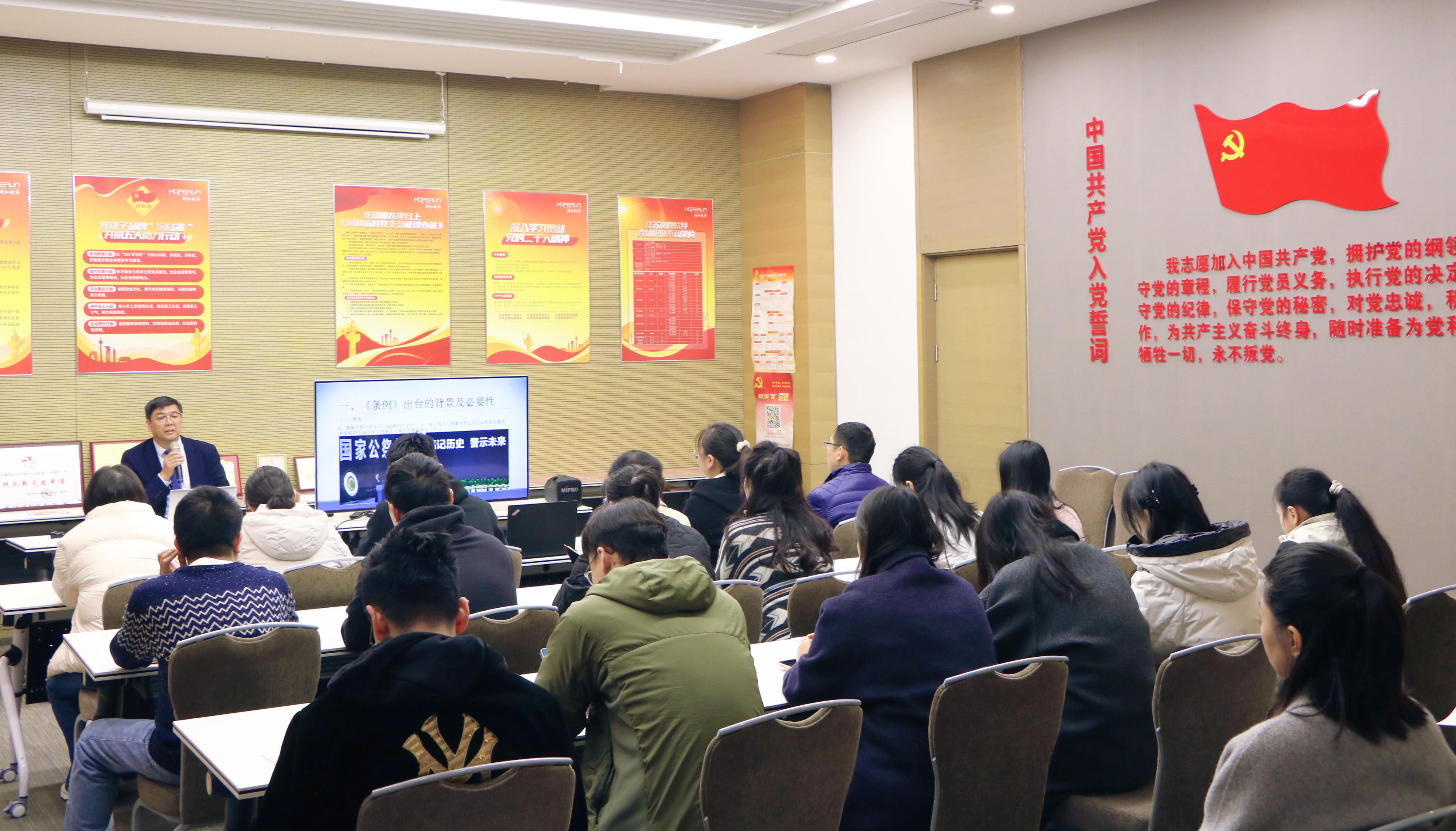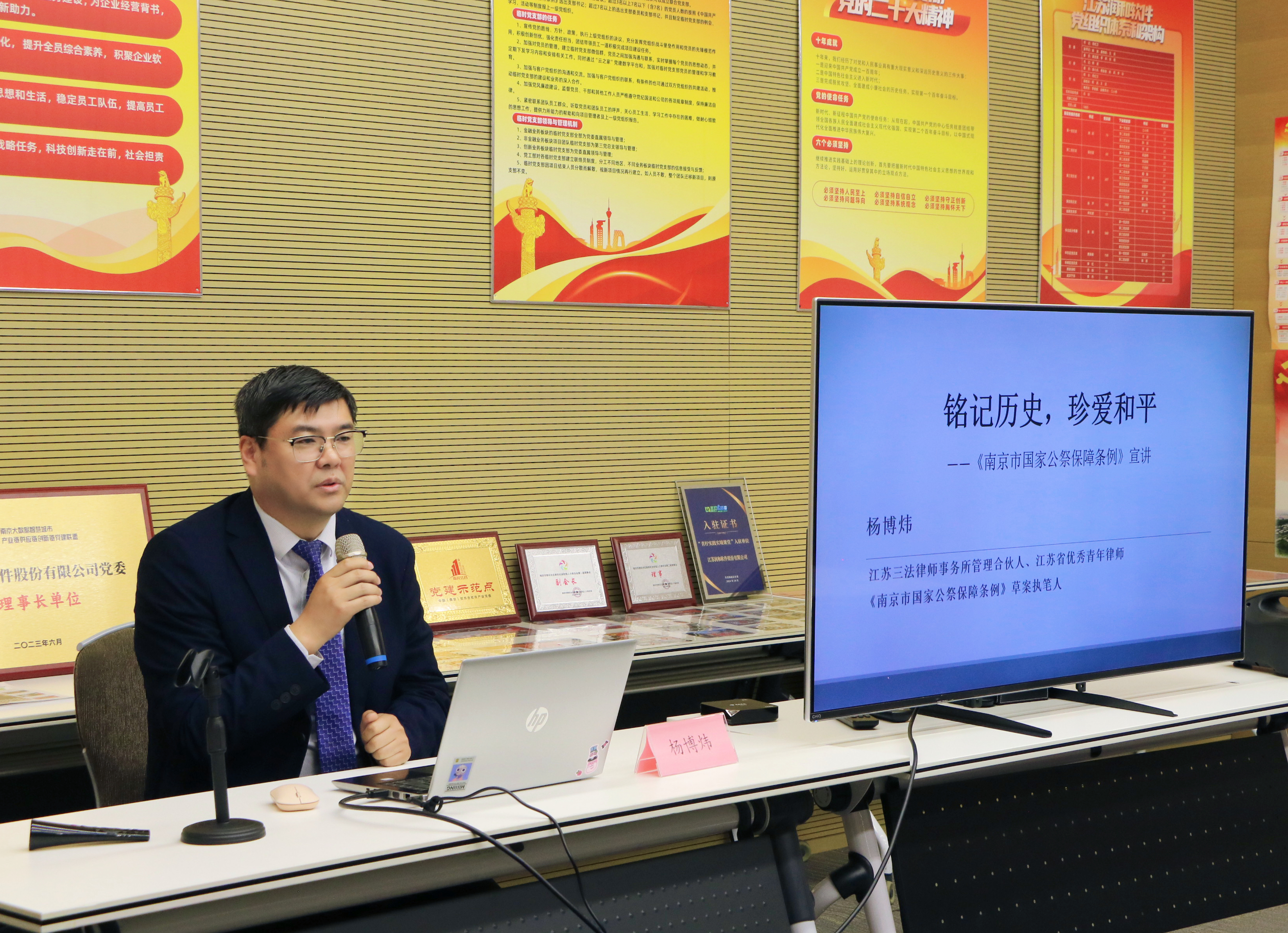 12月10日,在江苏润和软件股份有限公司,杨博炜律师围绕《南京市国家公祭保障条例》的立法精神与核心要义,向企业员工系统阐释了《条例》的出台背景、主要内容及其在地方法治建设中的重要意义, 同大家一起学习《条例》的主要内容,深刻理解《条例》的法治价值与时代内涵,自觉成为爱国主义精神的践行者、历史记忆的坚定守护者。
