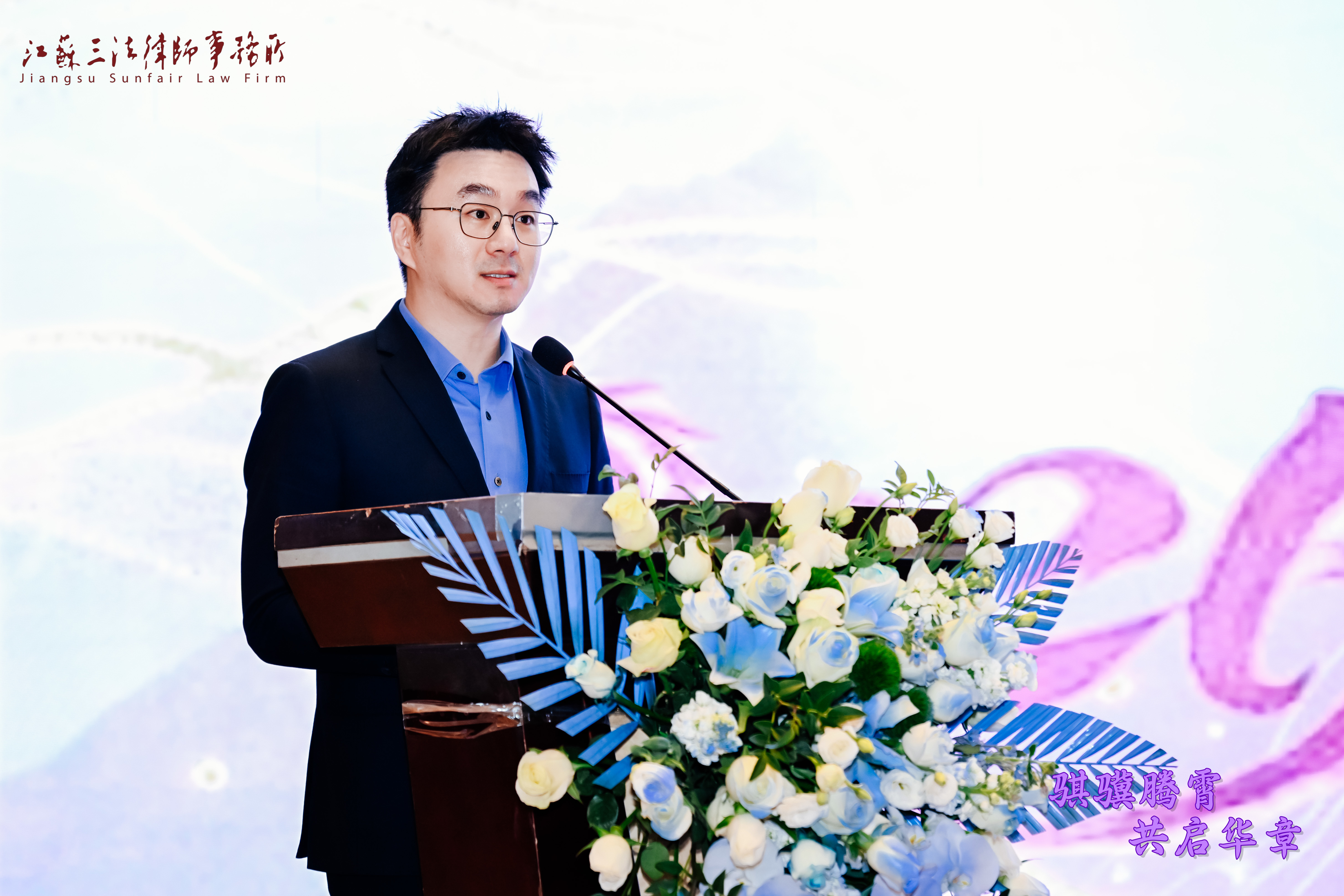 会上,三法所主任张超代表全体合伙人,向全体同仁作《江苏三法律师事务所2025年度总结报告》,报告立足律所年度发展实际,全面系统回顾并梳理了过去一年三法所在党建工作、业务发展、队伍建设、社会责任、荣誉成果等领域的奋进足迹与丰硕成果。同时,张超主任围绕专业化提升、品牌深化、业务拓展等方面,为全所新一年的工作擘画了清晰路径,凝聚起了全体同仁奋勇前行的强大合力。