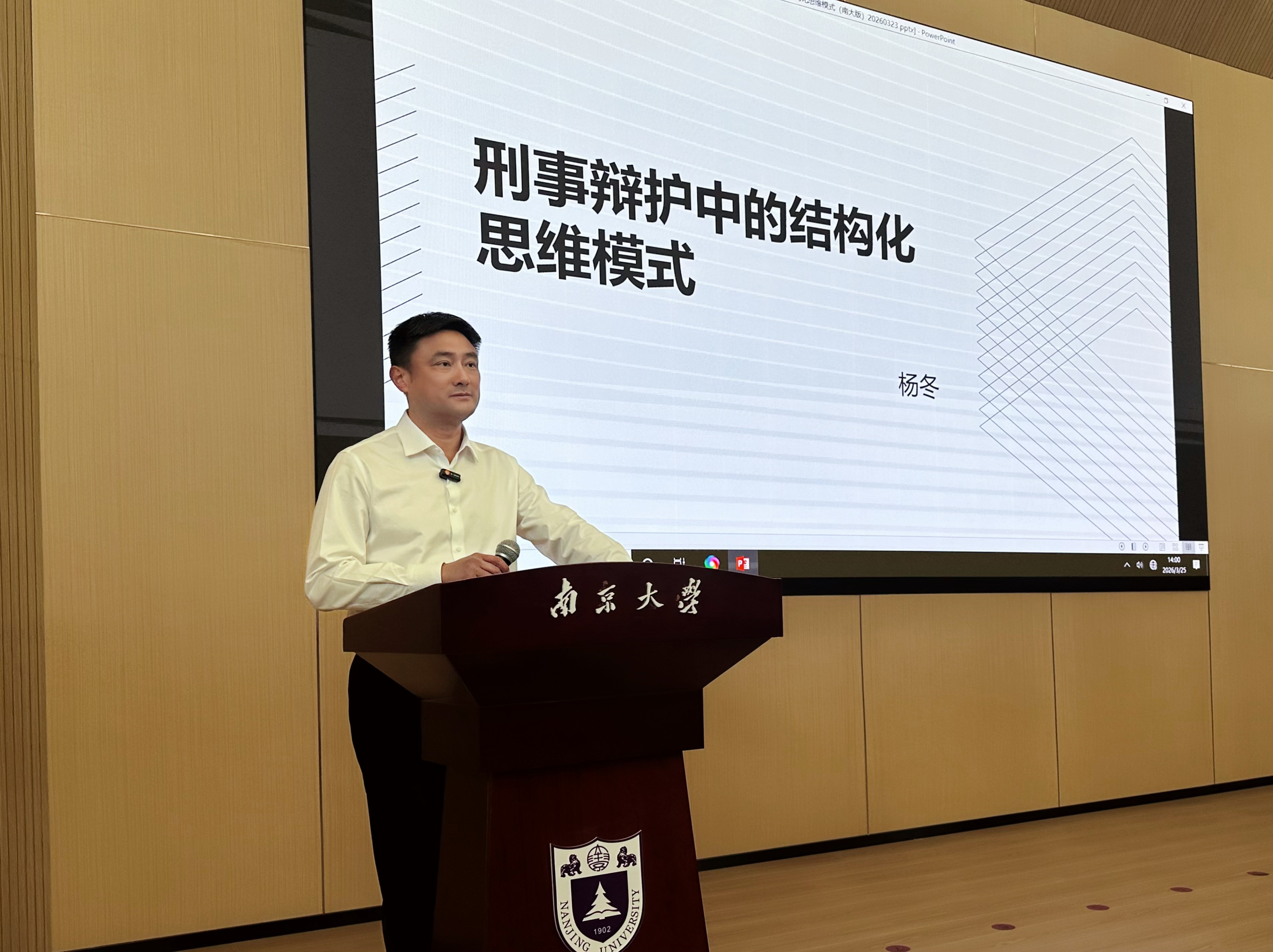 3月25日,江苏三法律师事务所管理合伙人杨冬律师作为南京大学硕士研究生行业导师应邀前往南京大学,以“刑事辩护中的结构化思维模式”为主题,为南京大学法学院的同学们带来了一场兼具理论深度与实务价值的专题授课。